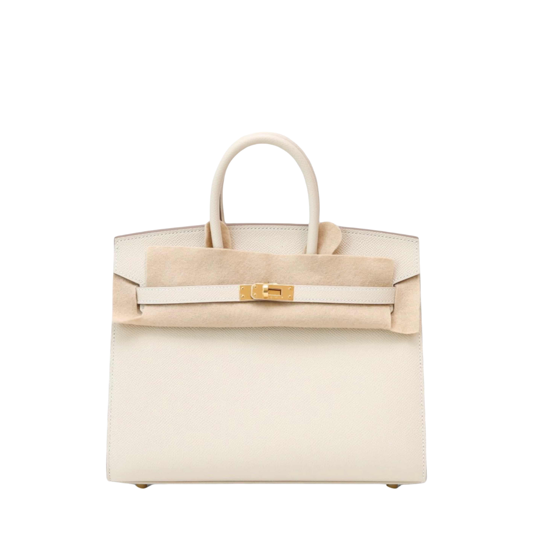 Dettagli:● Dimensioni: 30 x 22 x 16 cm● Materiale: pelle Togo● Colore: crema● Chiusura: con patta e fibbia● Logo: Hermès