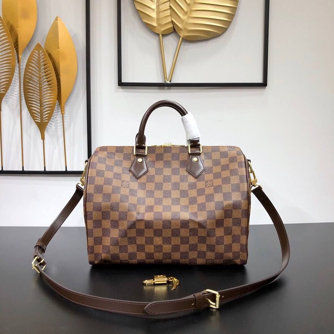 Borsa Louis Vuitton Speedy Bandoulière in tela Damier Ebene 30 cm