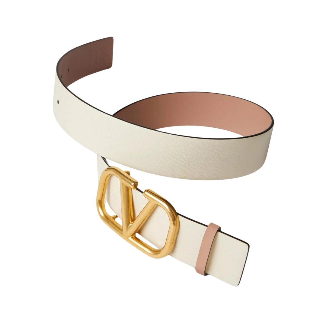 Cintura reversibile Valentino VLogo in pelle avorio/rosa cannella 4 cm