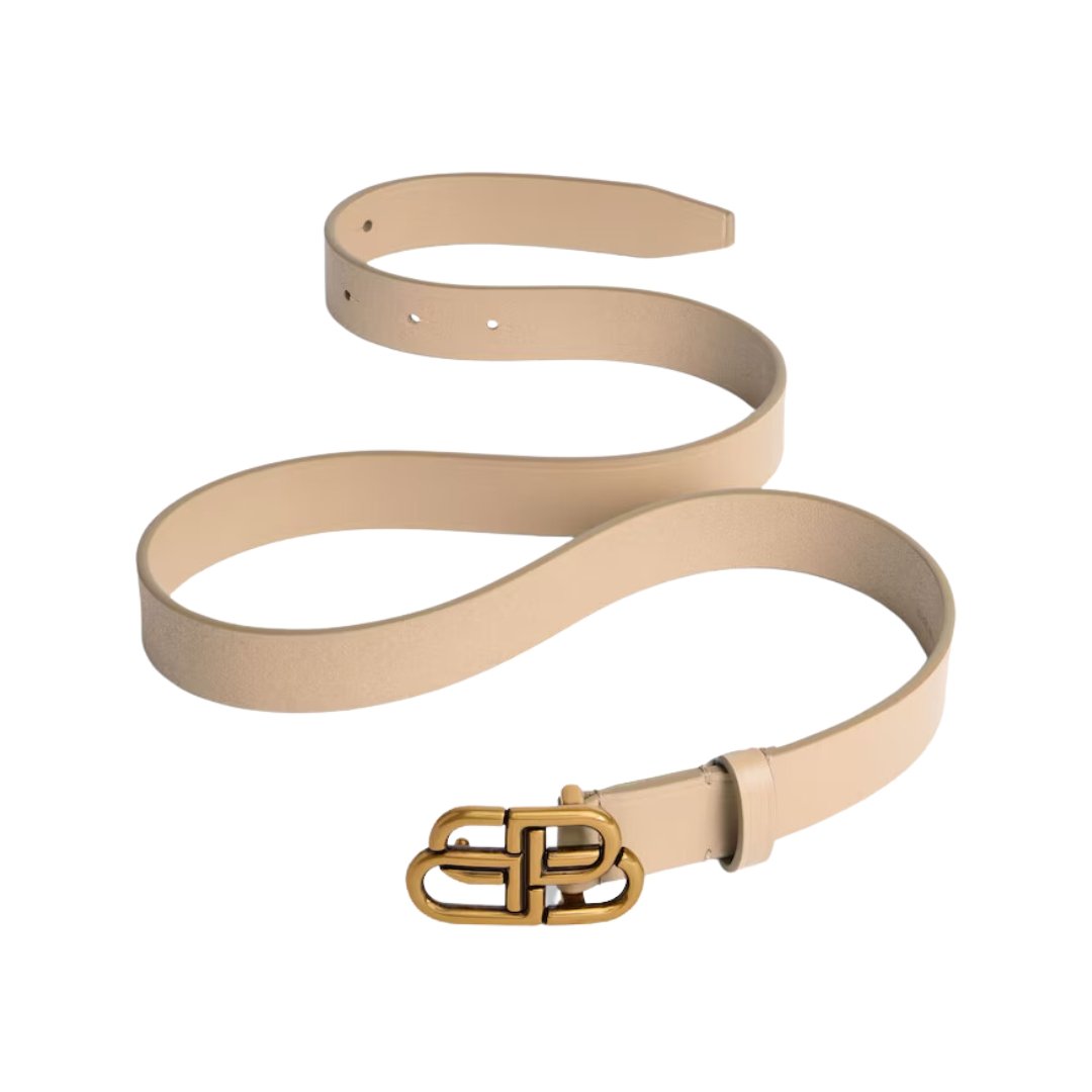 Cintura Balmain BB sottile in pelle color latte 2,5 cm