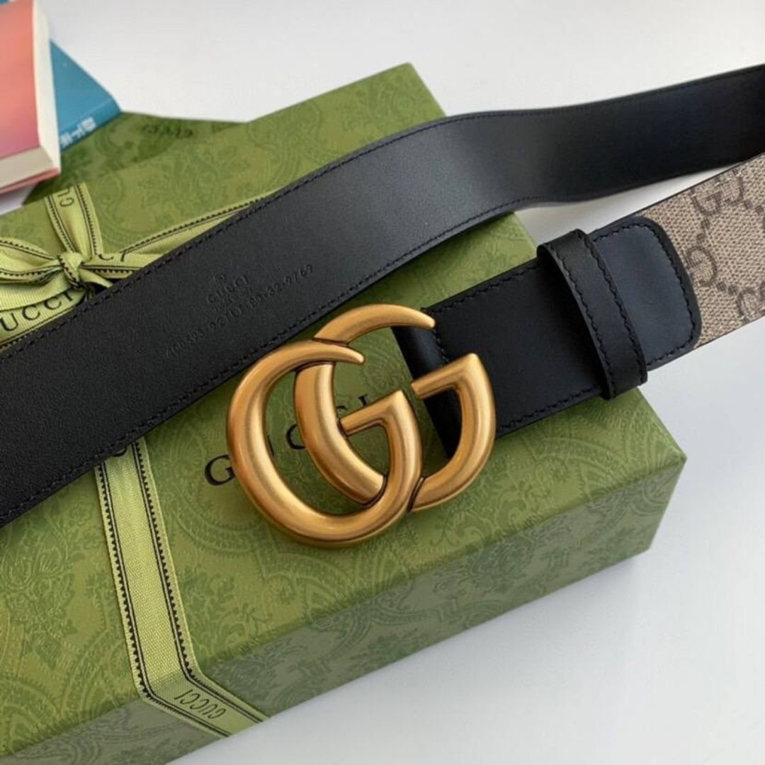 Cintura Gucci GG Marmont marrone e nera 4 cm
