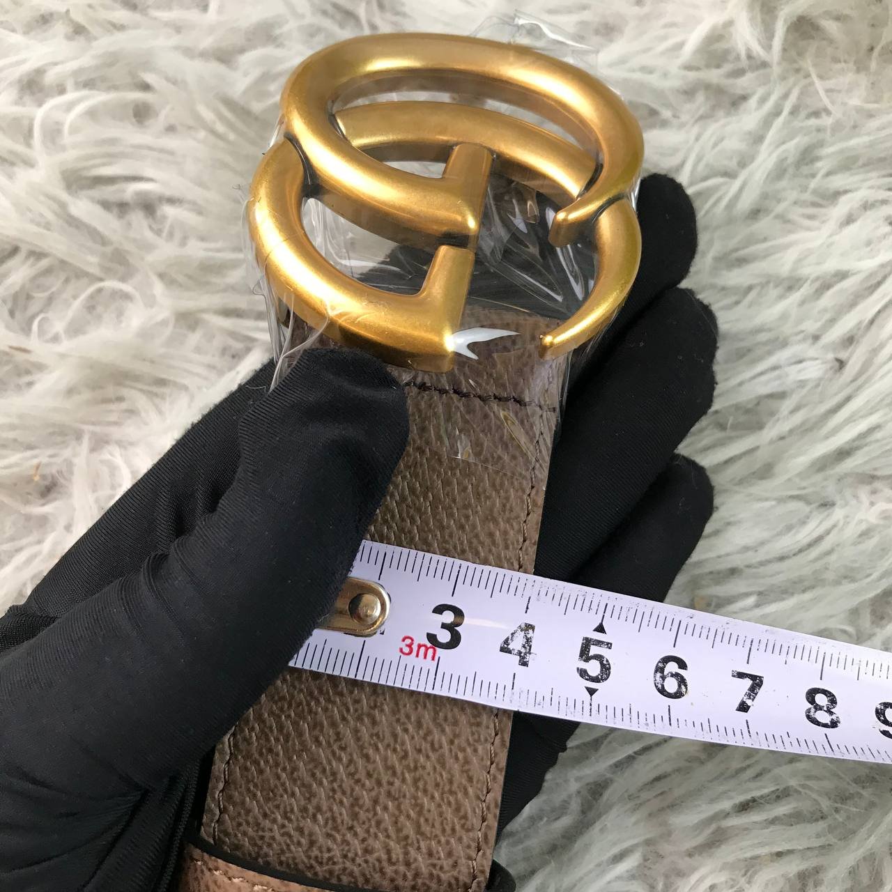 Cintura Gucci GG Marmont marrone e beige 4 cm