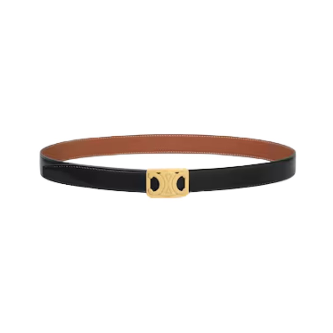 Dettagli:● Materiale: Pelle liscia● Colore: Nero e cuoio (reversibile)● Chiusura: Fibbia Triomphe dorata● Logo: Celine inciso sulla fibbia● Parti metalliche: