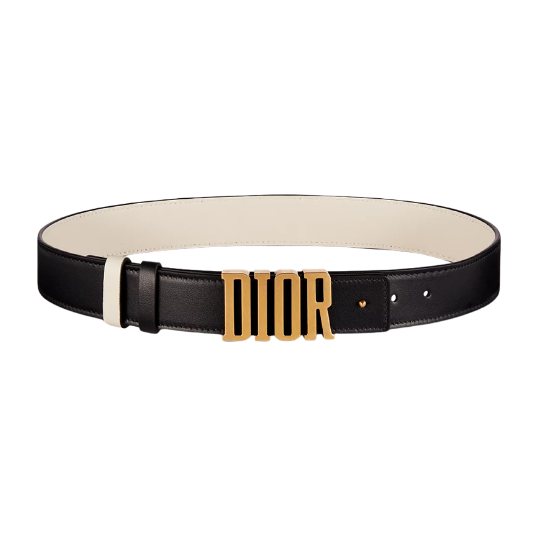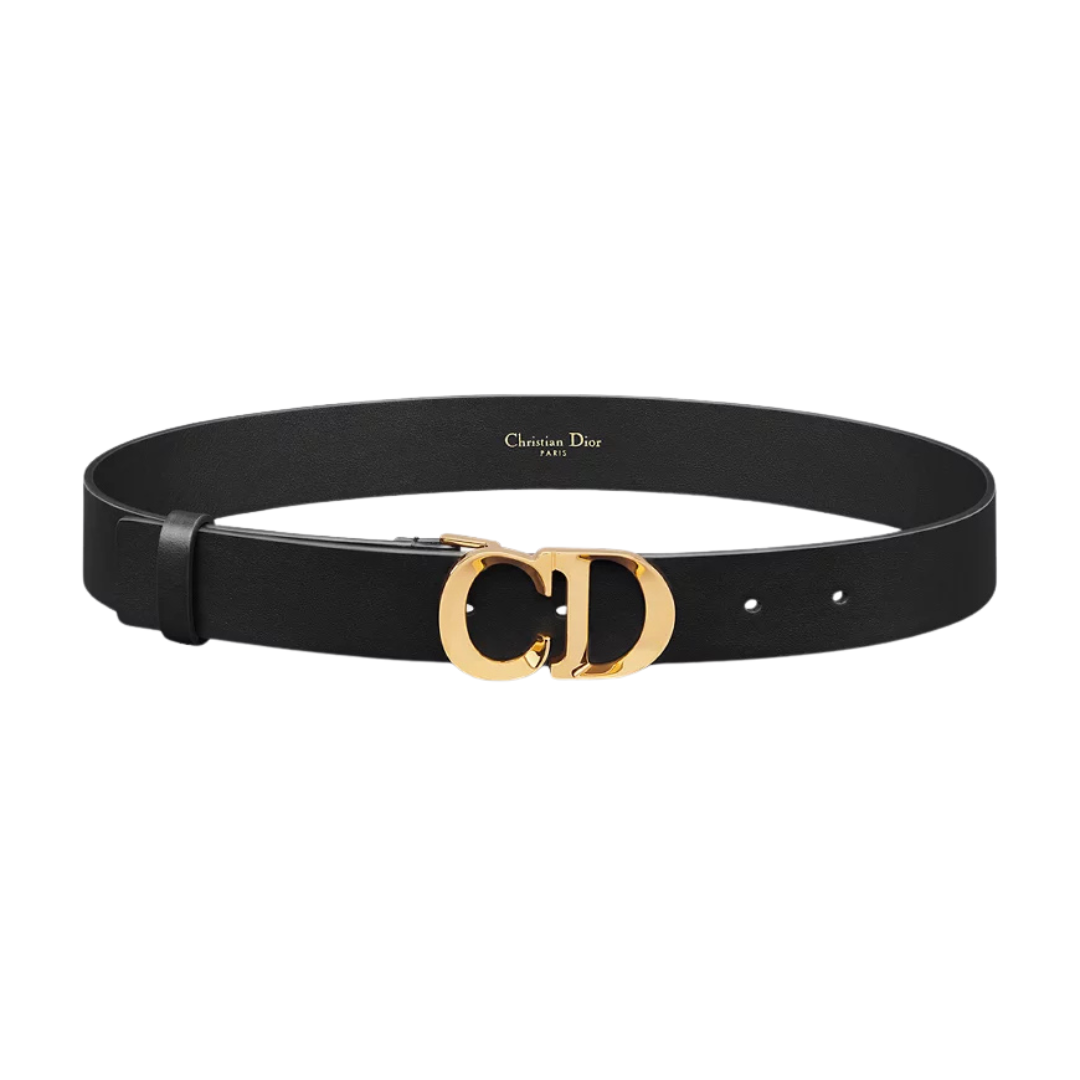 Cintura Dior 30 Montaigne in pelle nera e oro chiaro 3 cm