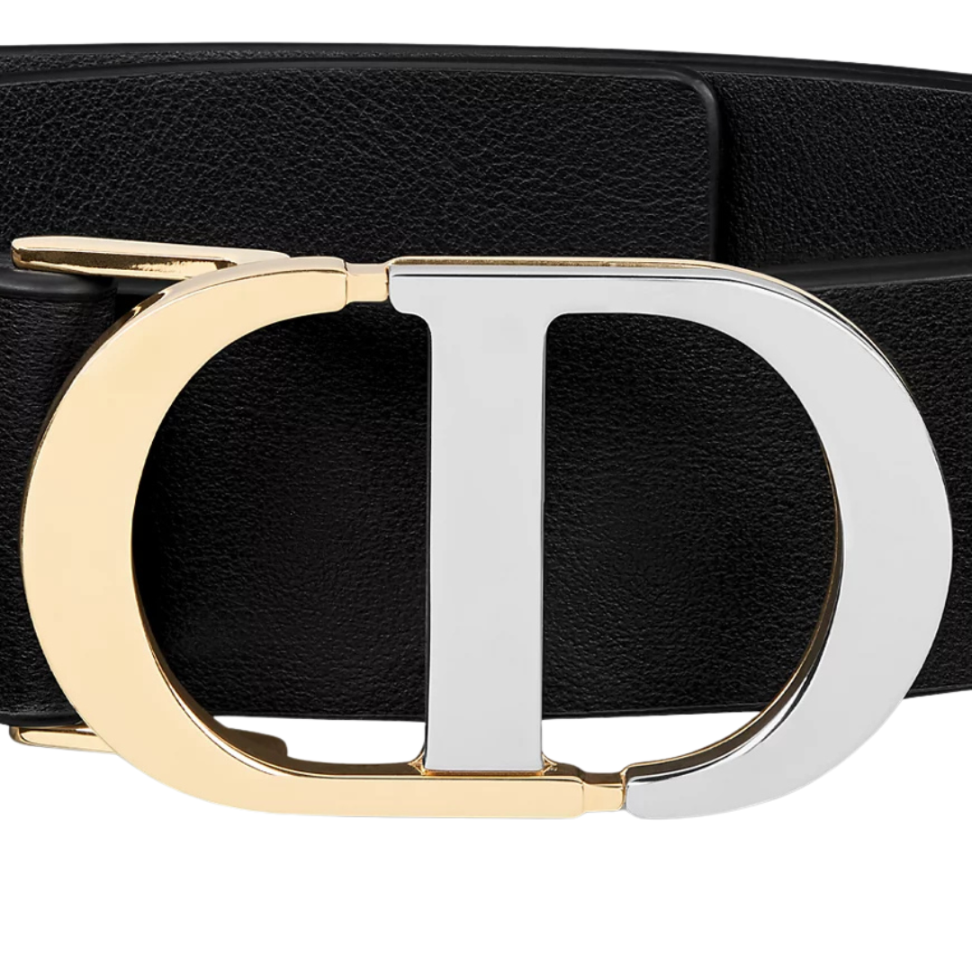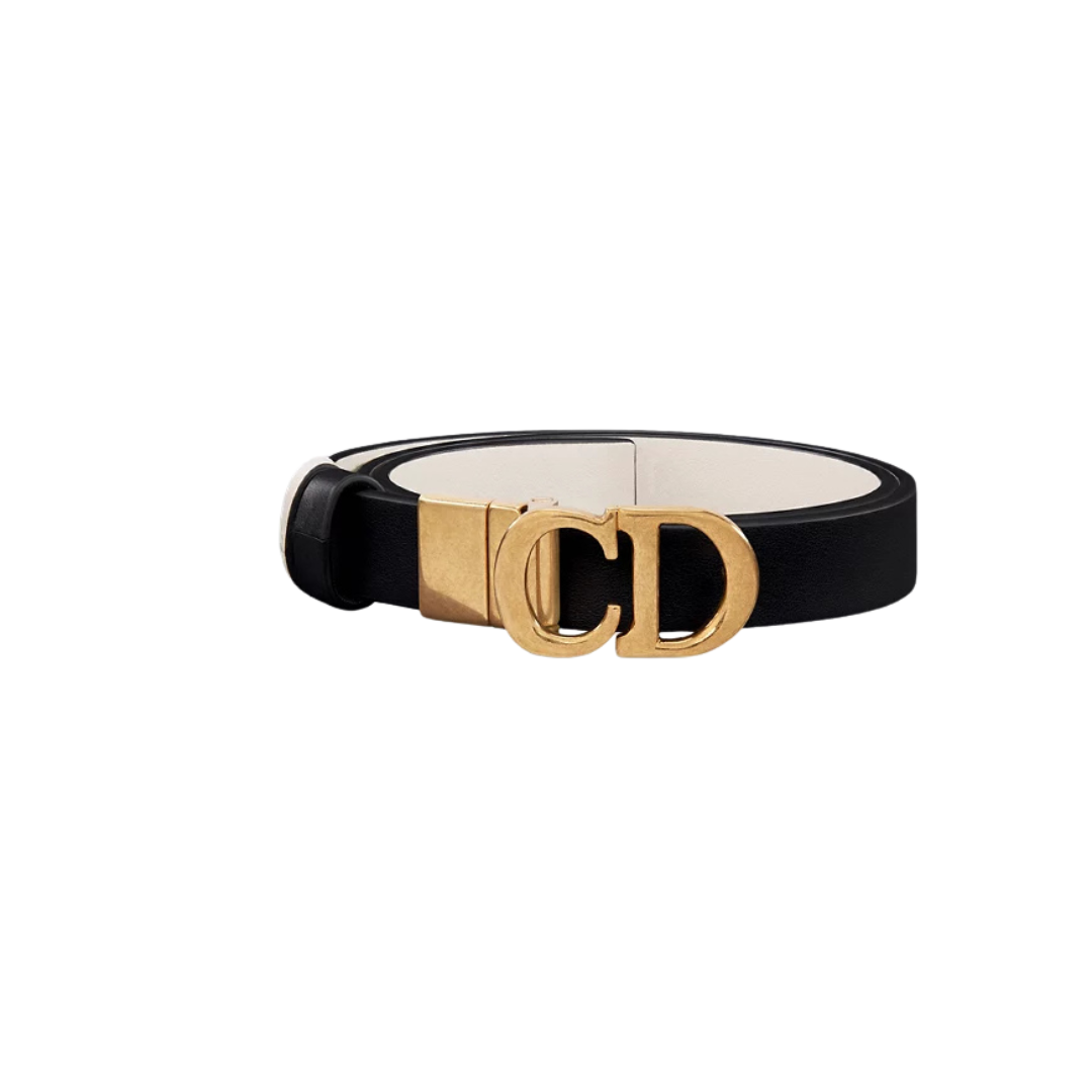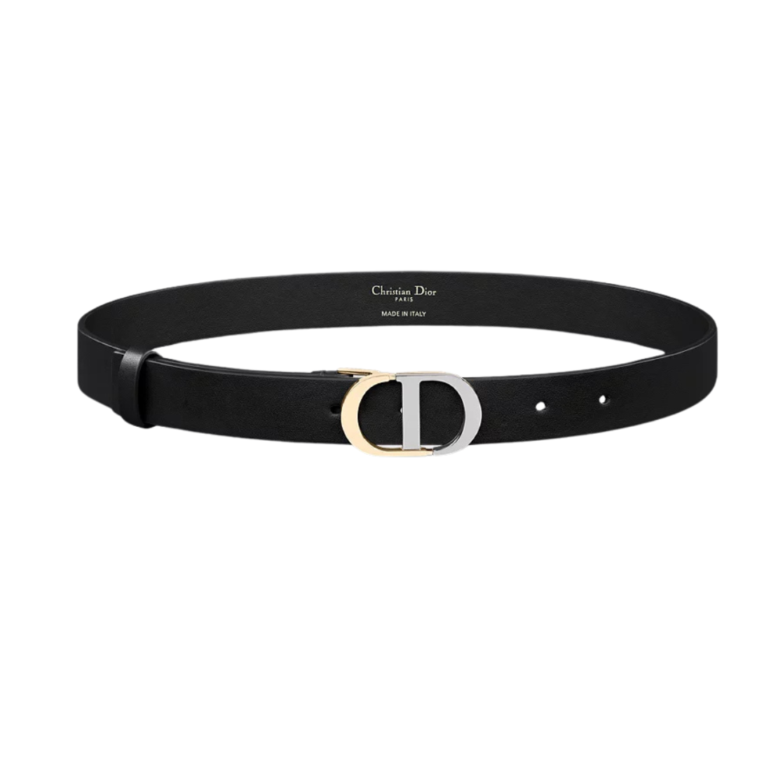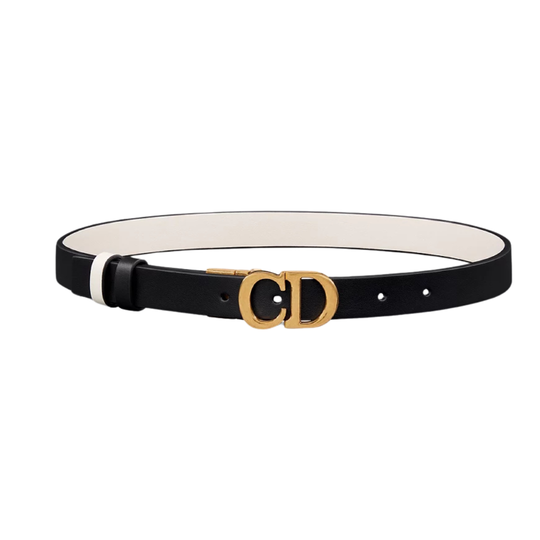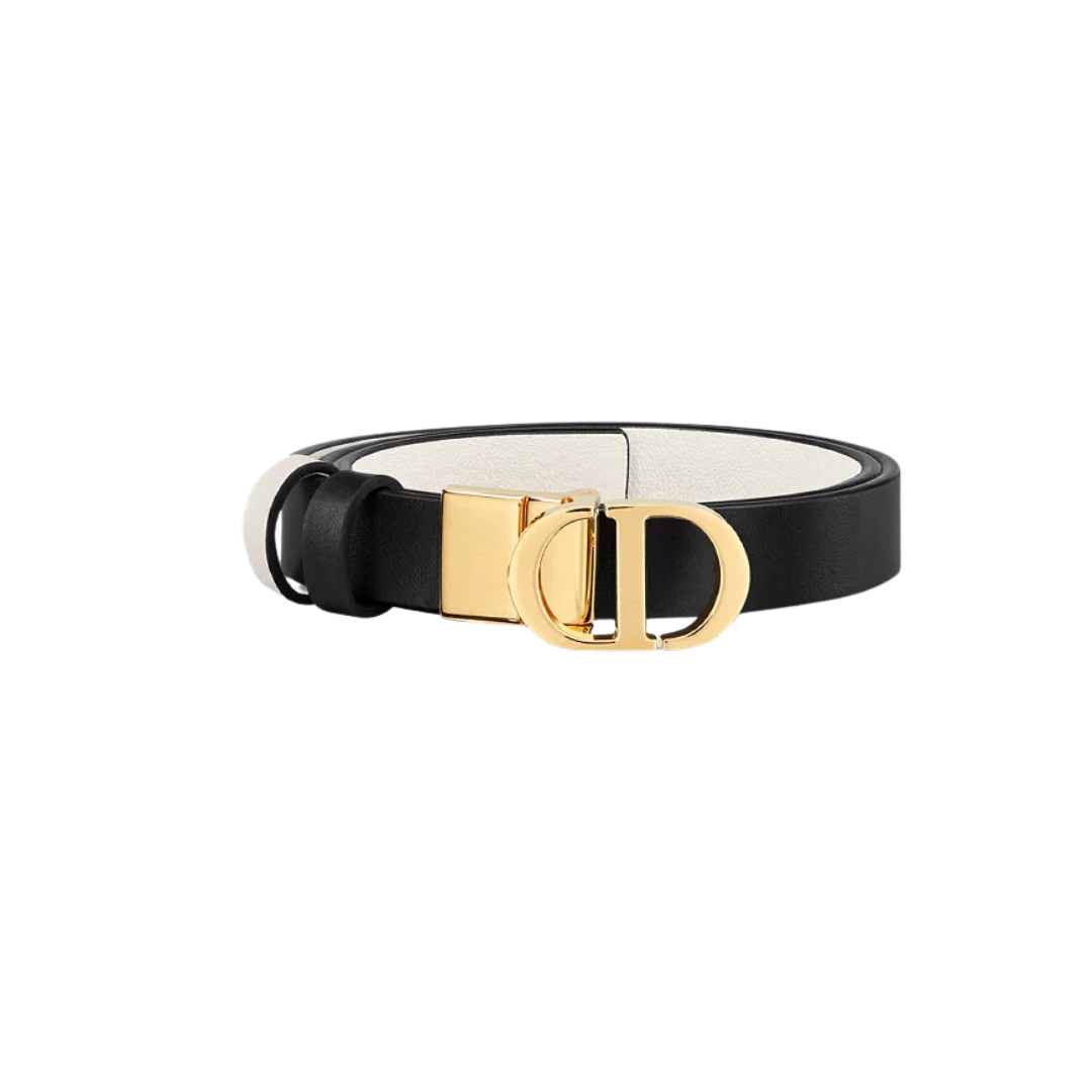 Cintura Dior 30 Montaigne in pelle nera e latte 2 cm