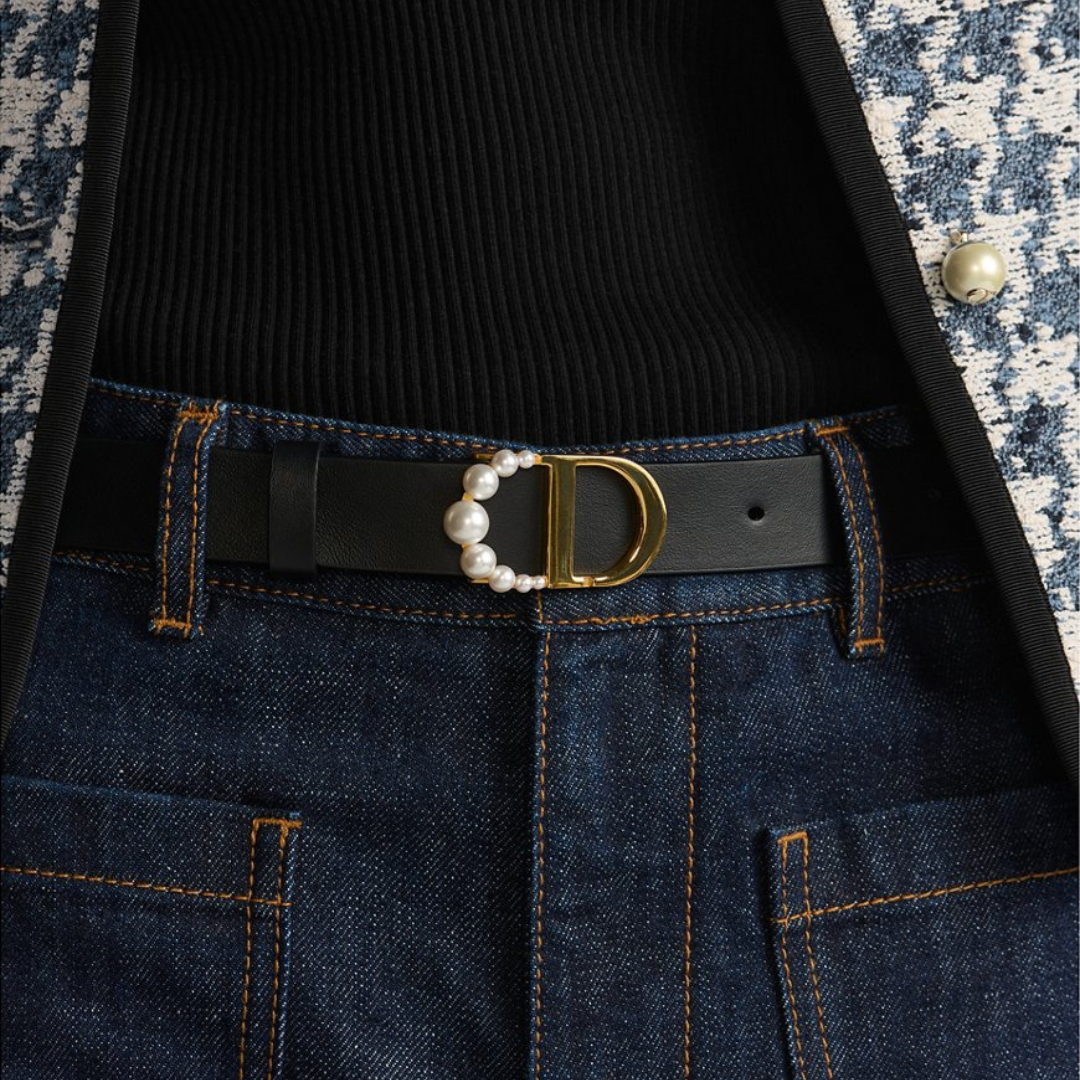 Dimensioni:● Larghezza: 2 cm Dettagli:● Materiale: Pelle di vitello liscia● Colore: Nero● Chiusura: Fibbia „CD“ decorata con perle bianche● Logo: