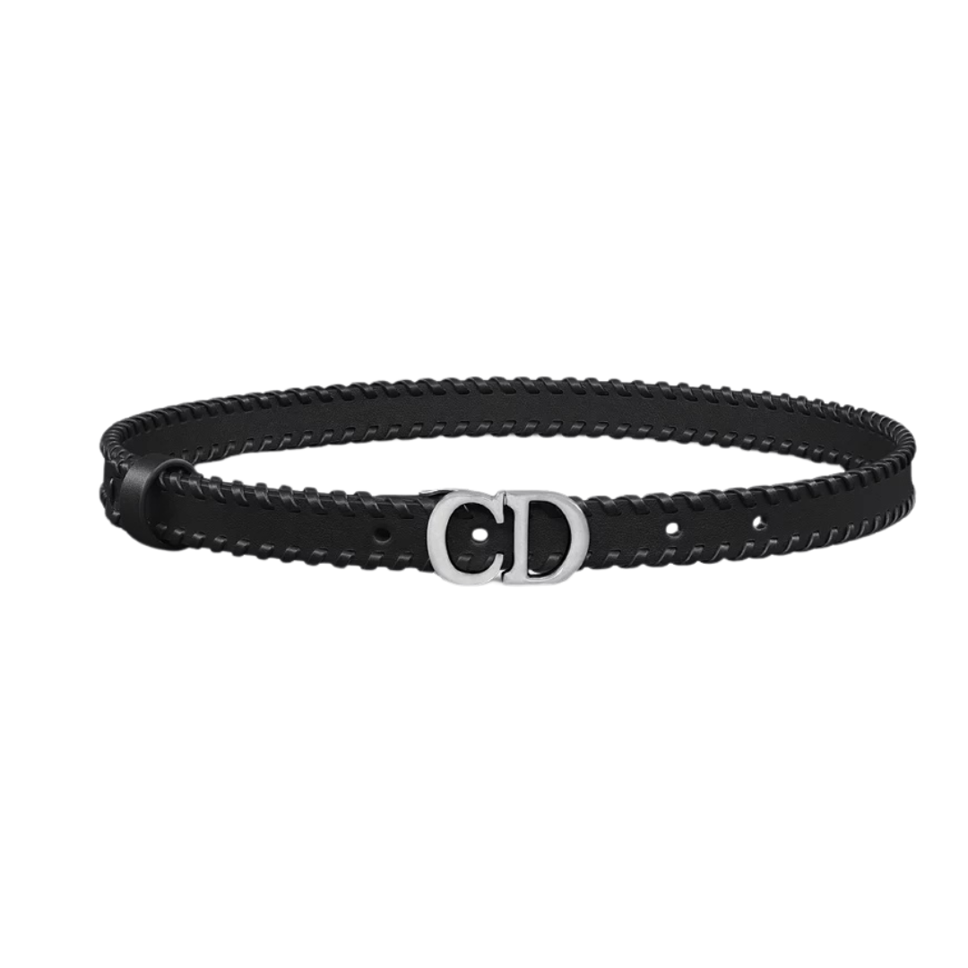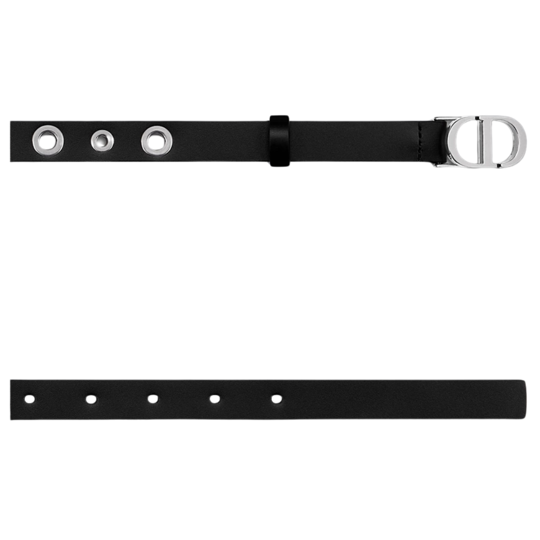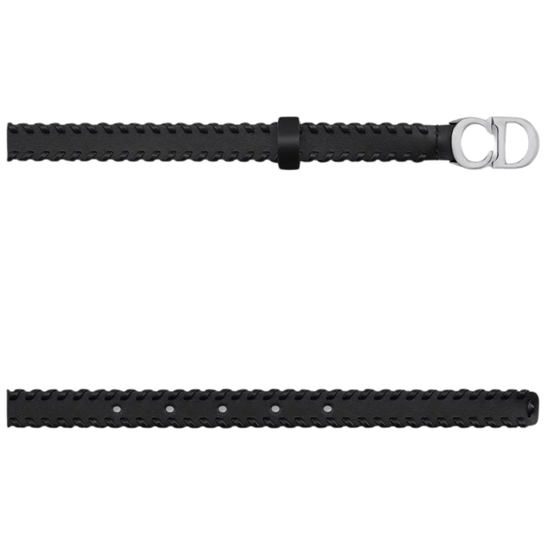 Dimensioni:● Larghezza: 2 cm Dettagli:● Materiale: Pelle di vitello liscia● Colore: Nero● Chiusura: Fibbia „CD“ decorata con cristalli bianchi● Logo: