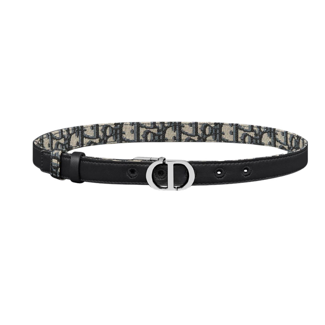 Cintura Dior 30 Montaigne in pelle blu e jacquard Oblique