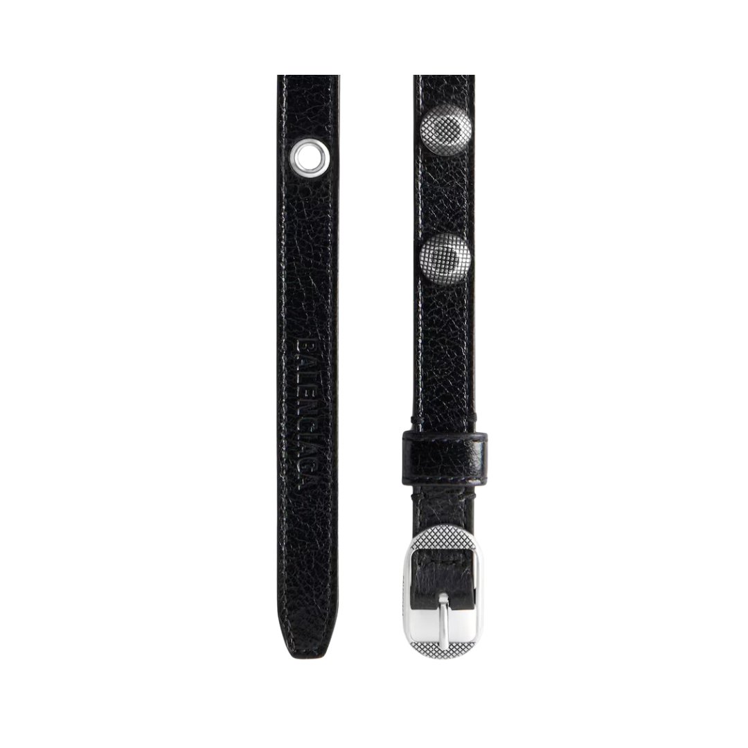 Dettagli:● Materiale: Pelle di vitello● Colore: Nero● Chiusura: Fibbia ad ardiglione● Logo: Incisione Balenciaga sulla fibbia● Altezza: 2,3 cm● Interno: