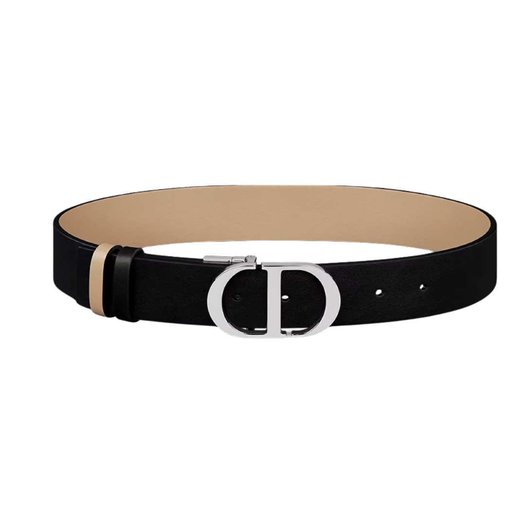 Cintura Dior 30 Montaigne in vitello nero e beige 3 cm