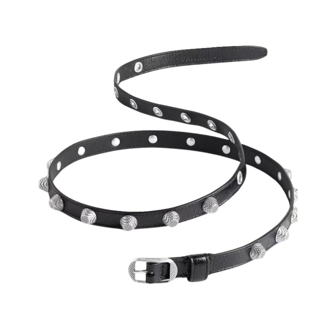 Cintura Balenciaga Le Cagole con borchie in pelle nera 2,3 cm