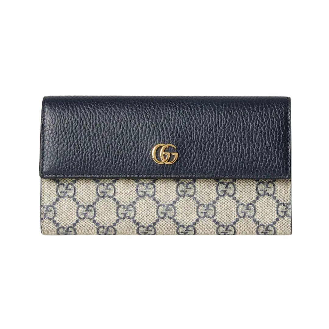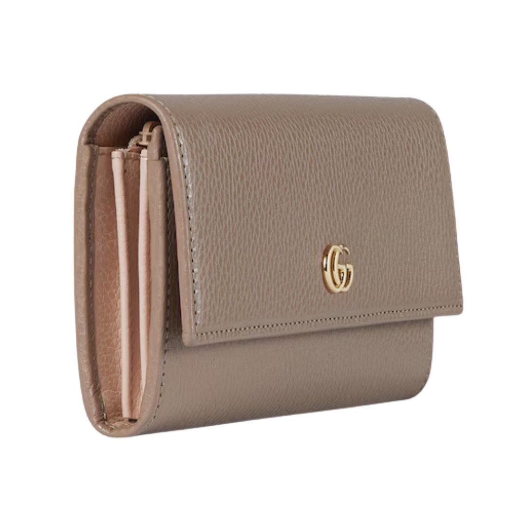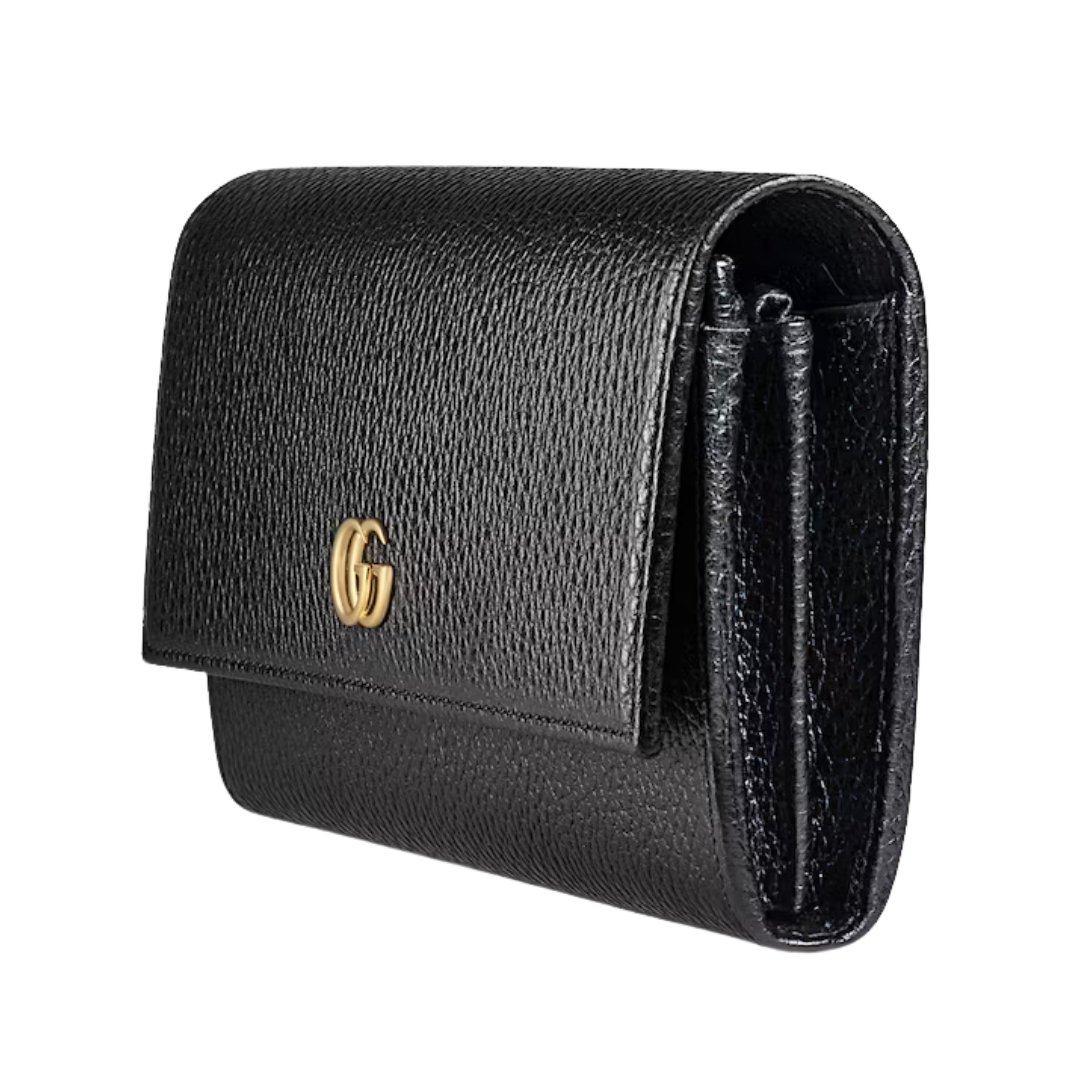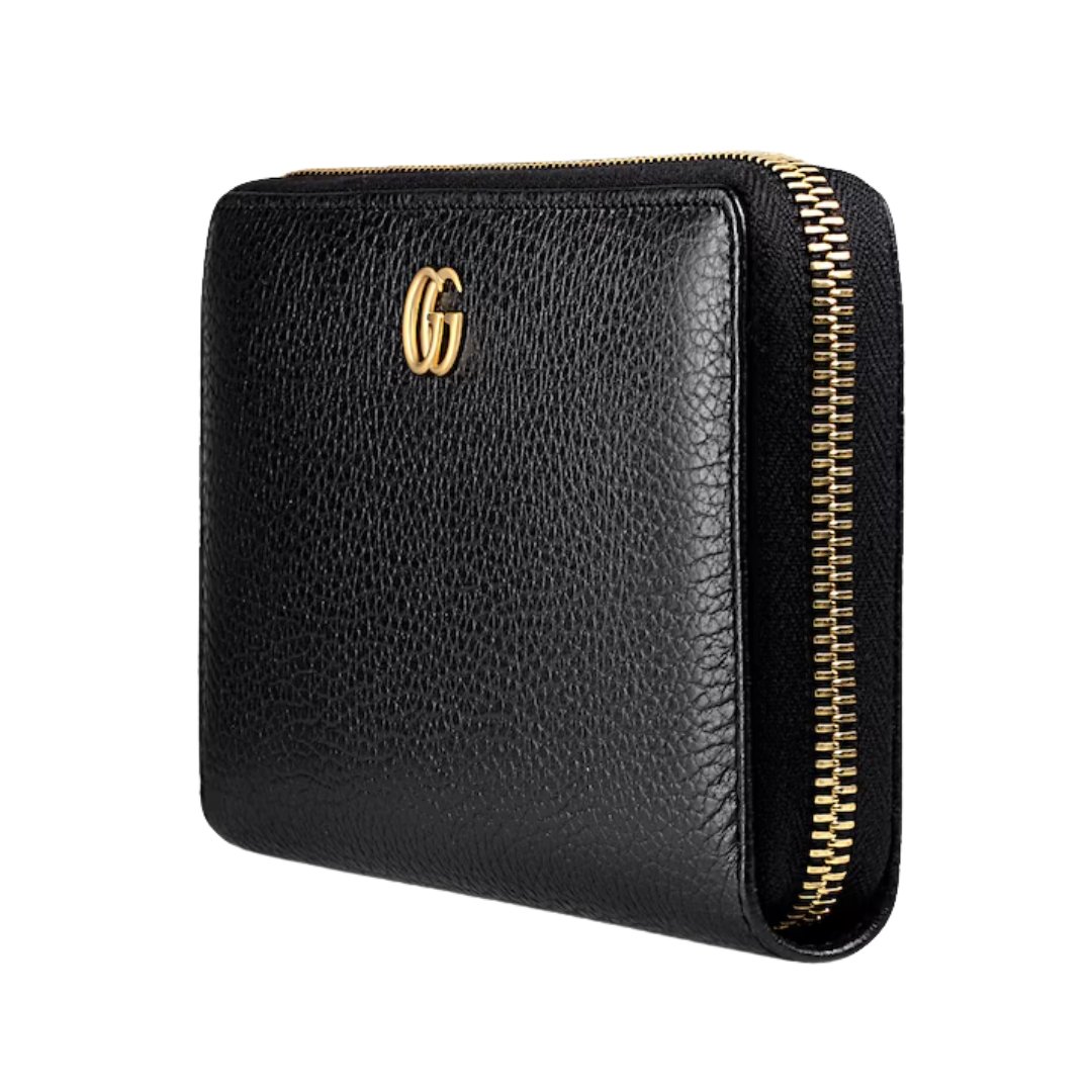 Portafoglio GG Marmont con zip in pelle nera 19 cm