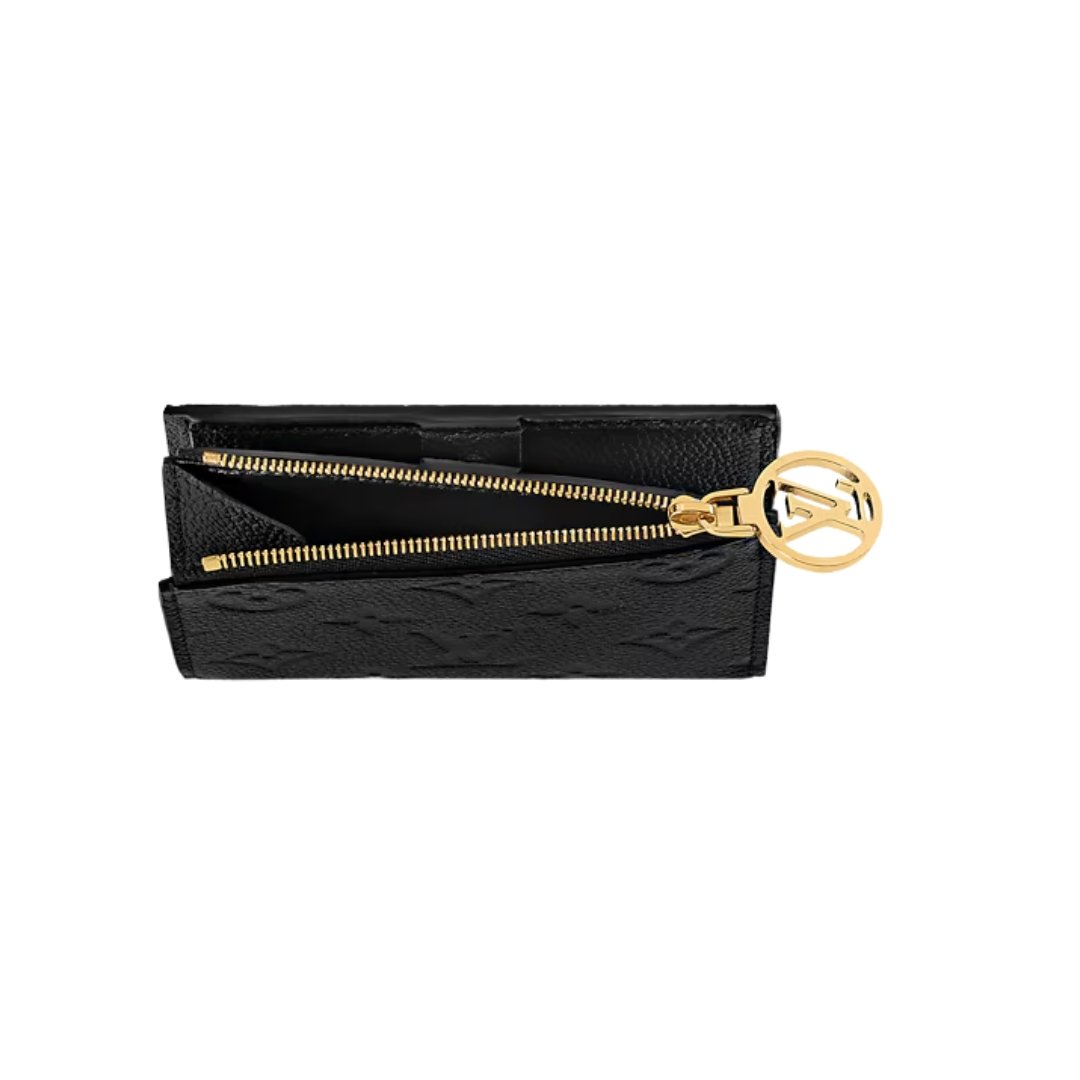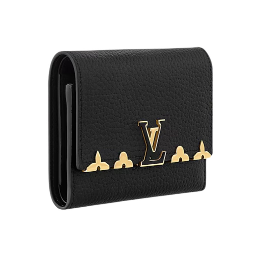 Portafoglio compatto Louis Vuitton Capucines in pelle nera 13,5 cm