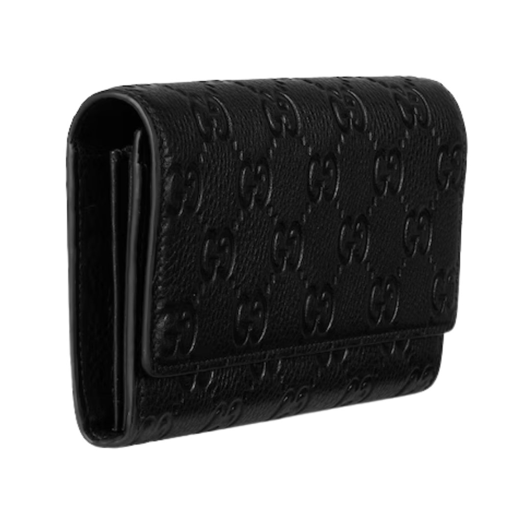 Dimensioni:● Larghezza: 13,5 cm● Altezza: 9 cm● Profondità: 2 cm Dettagli:● Materiale: Pelle Taurillon● Colore: Nero● Chiusura: Patta con bottone●