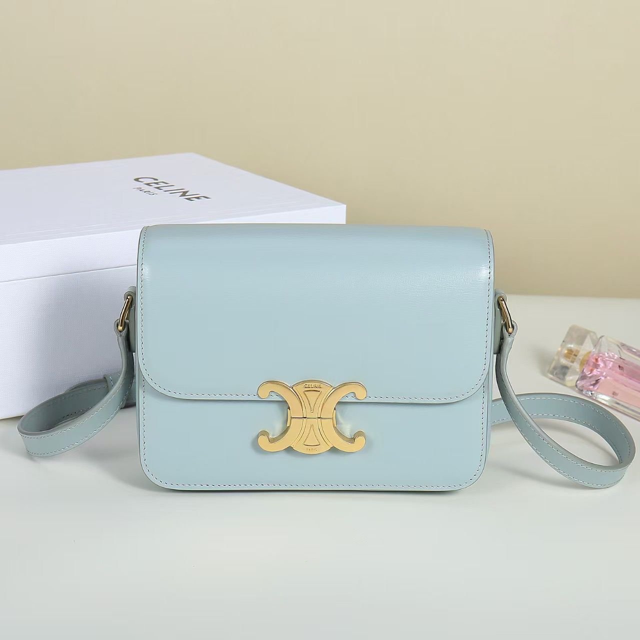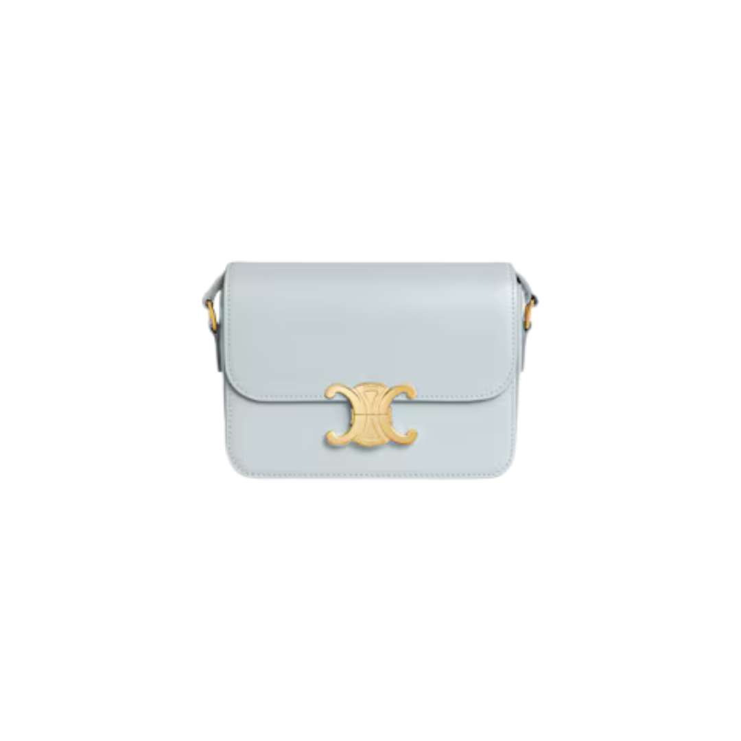 Celine Triomphe Teen in pelle di vitello lucida azzurra 18,5 cm