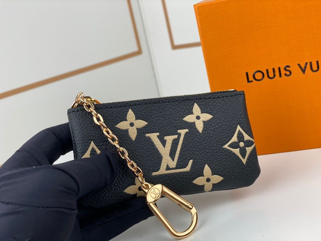 Dimensioni:● Larghezza: 19 cm● Altezza: 10 cm● Profondità: 2 cm Dettagli:● Materiale: pelle e tela Monogram● Colore: nero e beige●