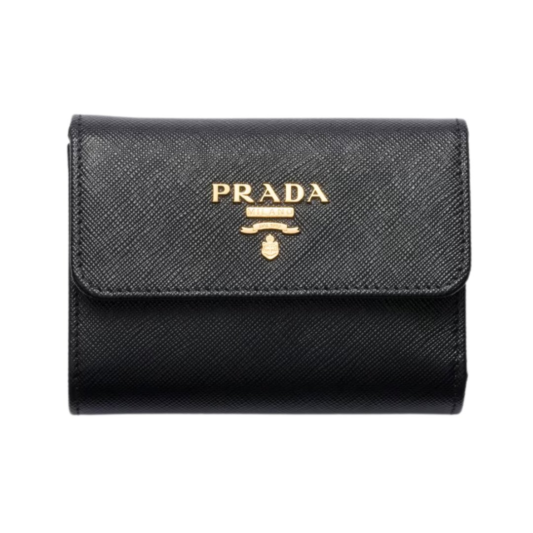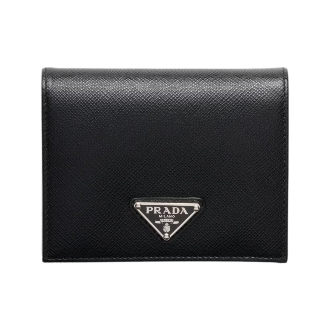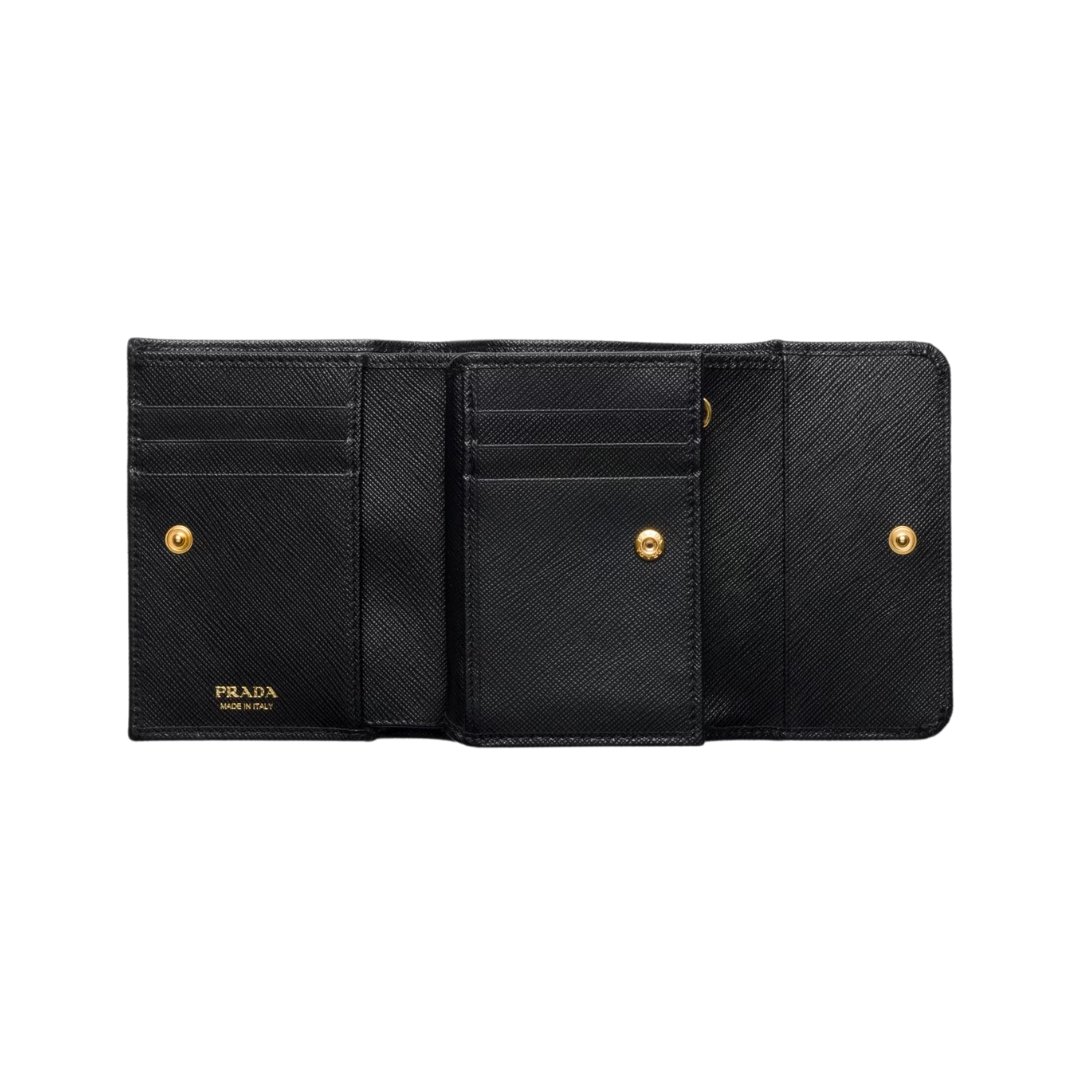 Portafoglio Prada compatto in pelle Saffiano nero 11,2 cm