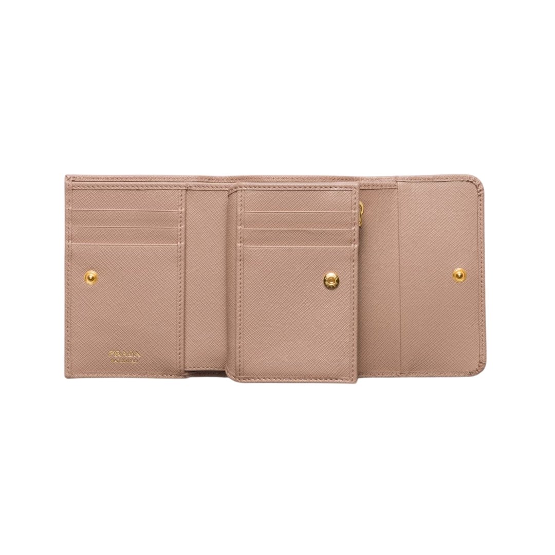 Portafoglio compatto Prada in pelle Saffiano rosa cipria 9.5 cm