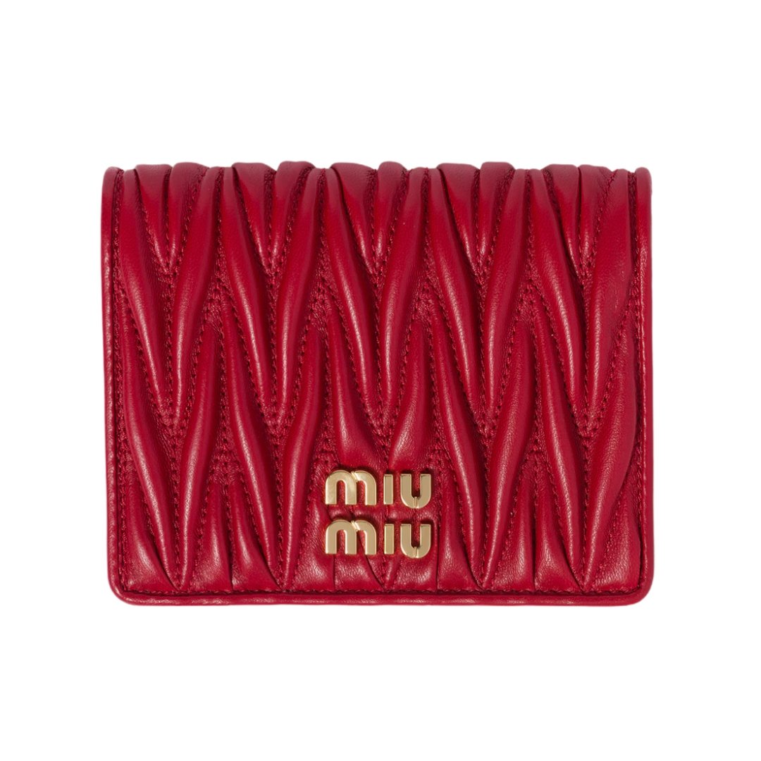 Portafoglio compatto Fendi in pelle nappa matelassé rossa 11.2 cm