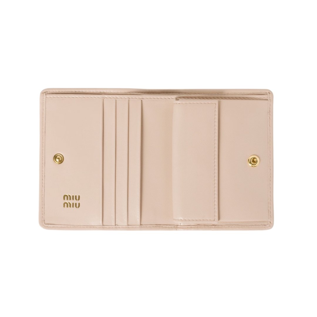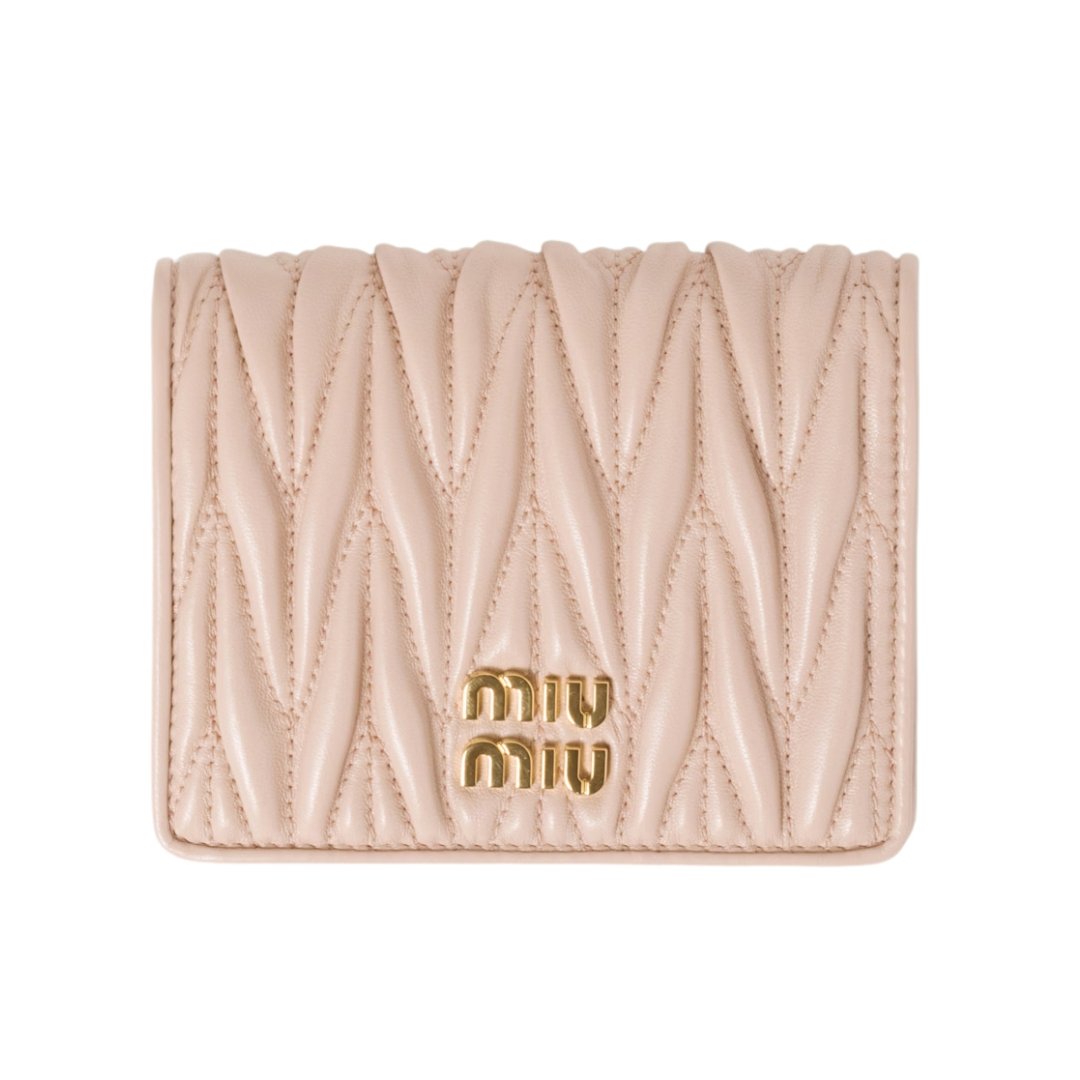 Portafoglio compatto Fendi in pelle nappa matelassé rosa cipria 11.2 cm
