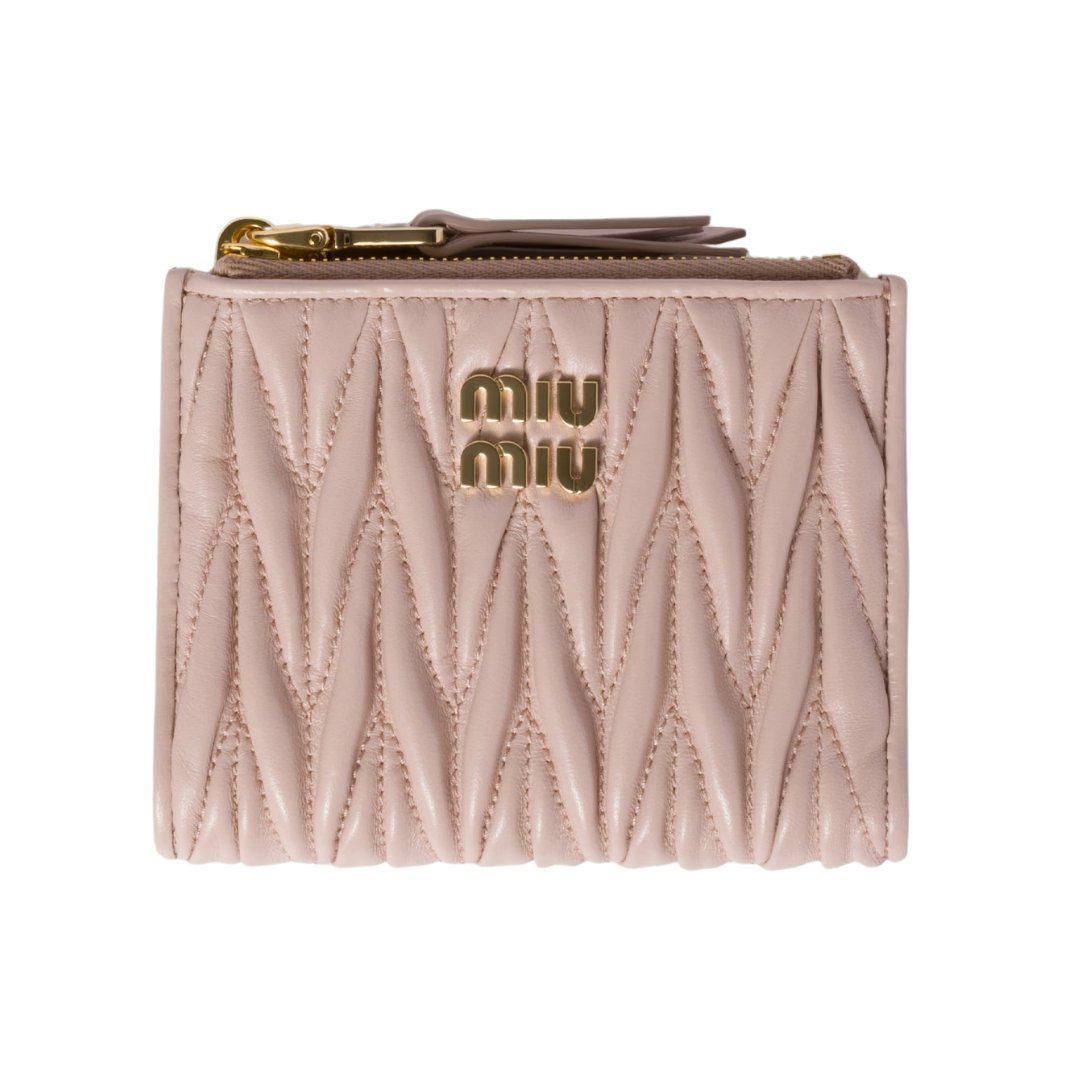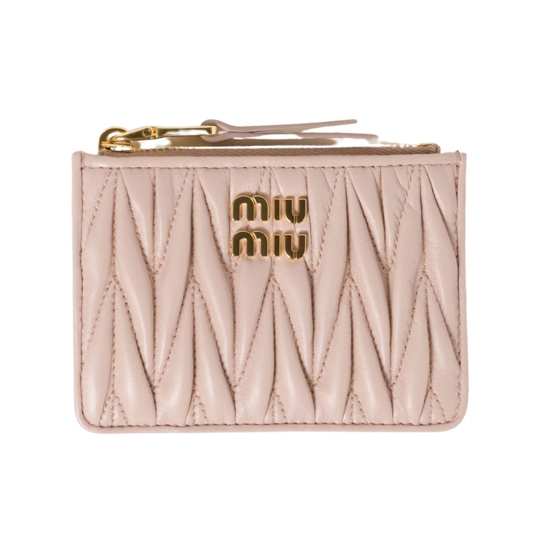 Dimensioni:● Larghezza: 11.2 cm● Altezza: 9 cm● Profondità: 2.5 cm Dettagli:● Materiale: Pelle Nappa matelassé● Colore: Rosa cipria● Chiusura: Zip