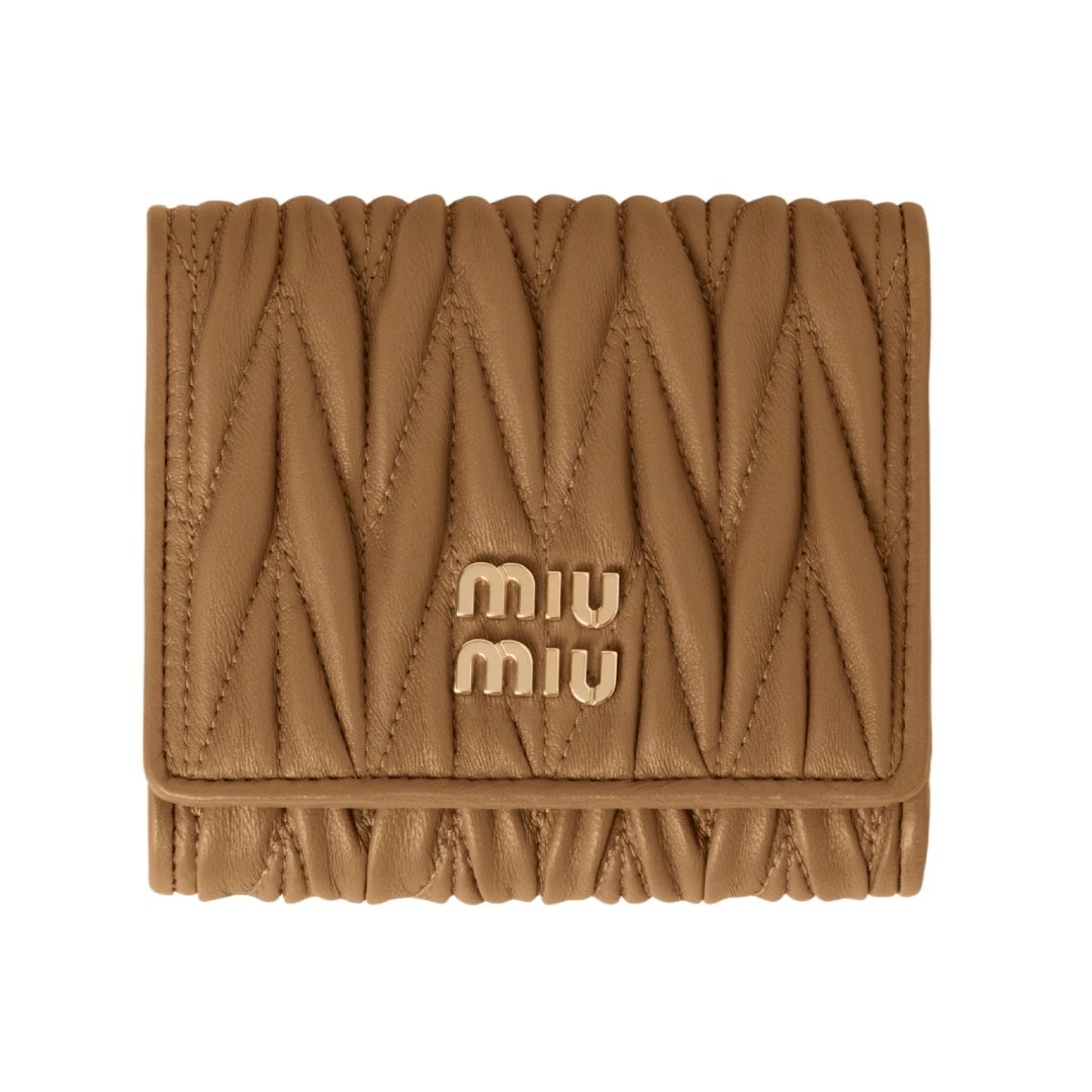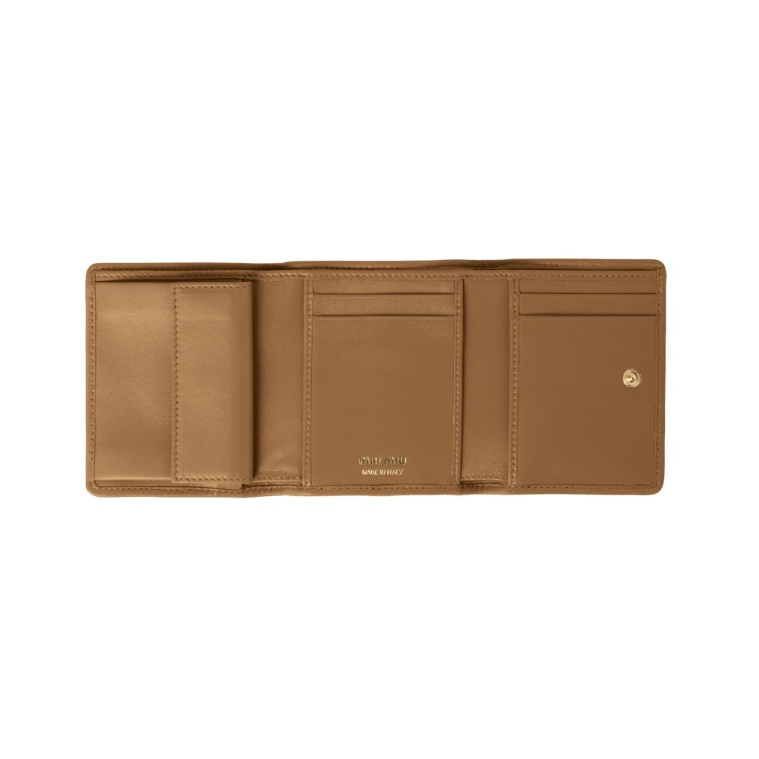 Portamonete Fendi matelassé piccolo in pelle nappa caramello 7,8 cm