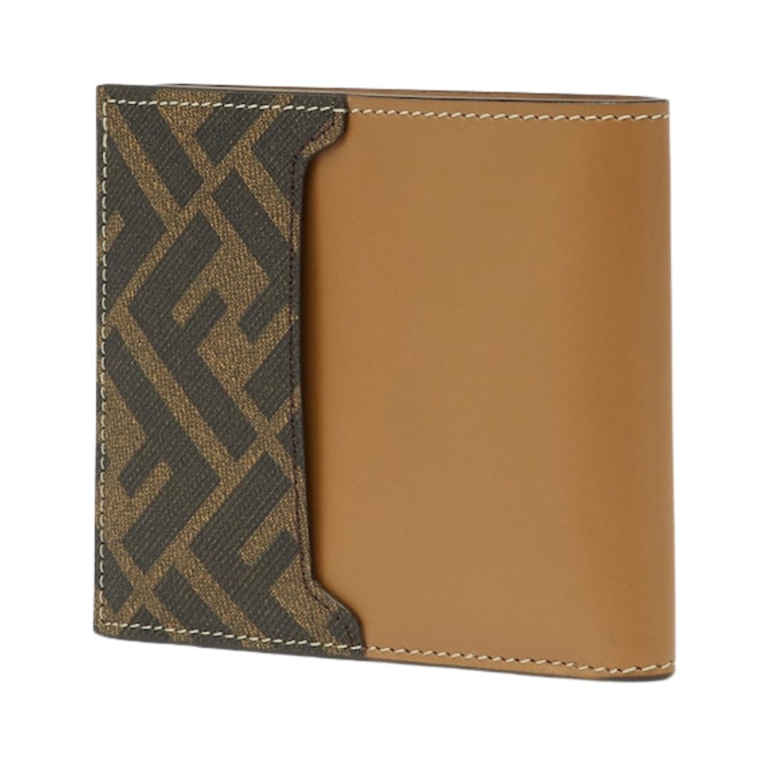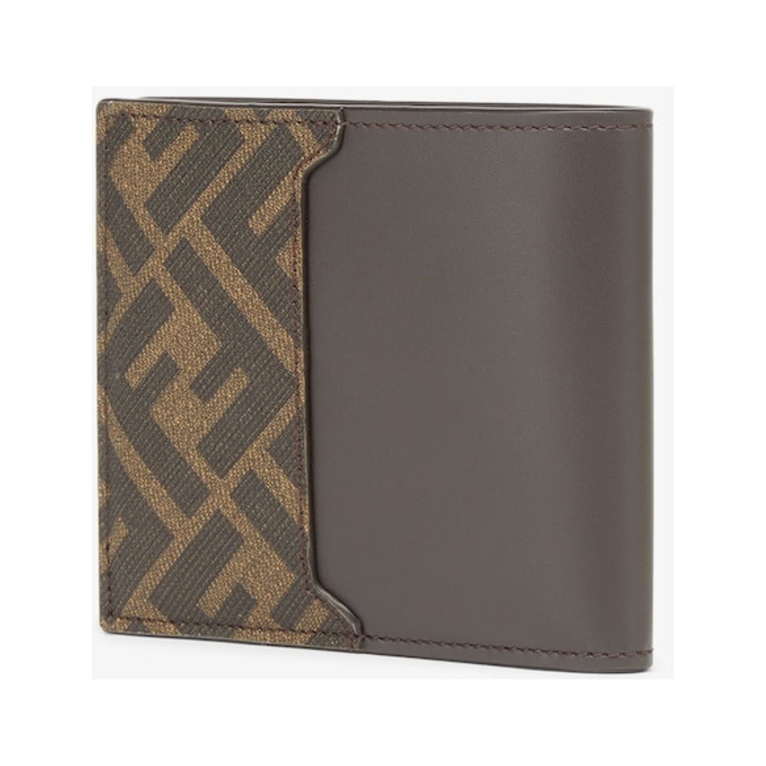 Portafoglio bi-fold Fendi in pelle con FF squared marrone 9.5 cm