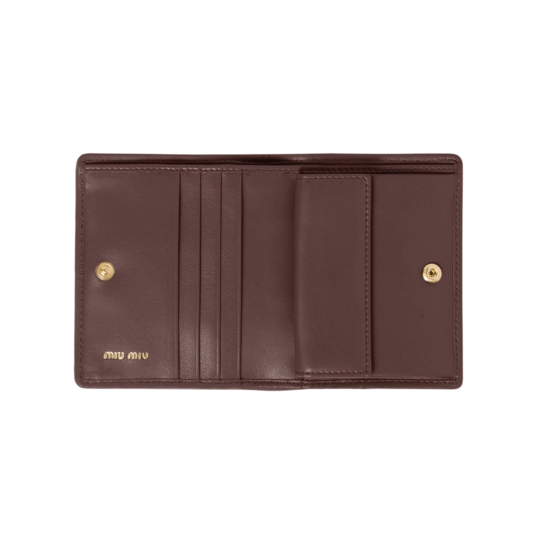 Portafoglio compatto Fendi in pelle nappa color legno bruno 11.2 cm