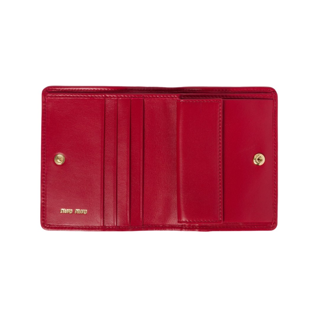 Dimensioni:● Larghezza: 8 cmDettagli:● Materiale: Pelle nappa● Colore: Rosso● Chiusura: A libro● Logo: Fendi goffrato● Interno: Scomparti per carte● Parti