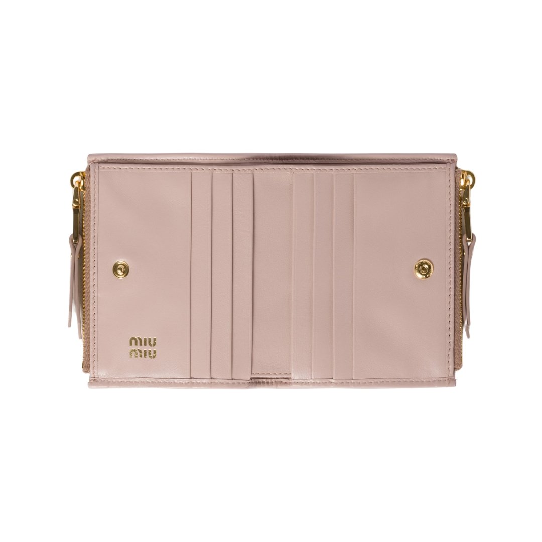 Dimensioni:● Larghezza: 11.2 cmDettagli:● Materiale: Pelle nappa matelassé● Colore: Rosa cipria● Chiusura: Bottone a pressione● Logo: Fendi goffrato interno● Interno: