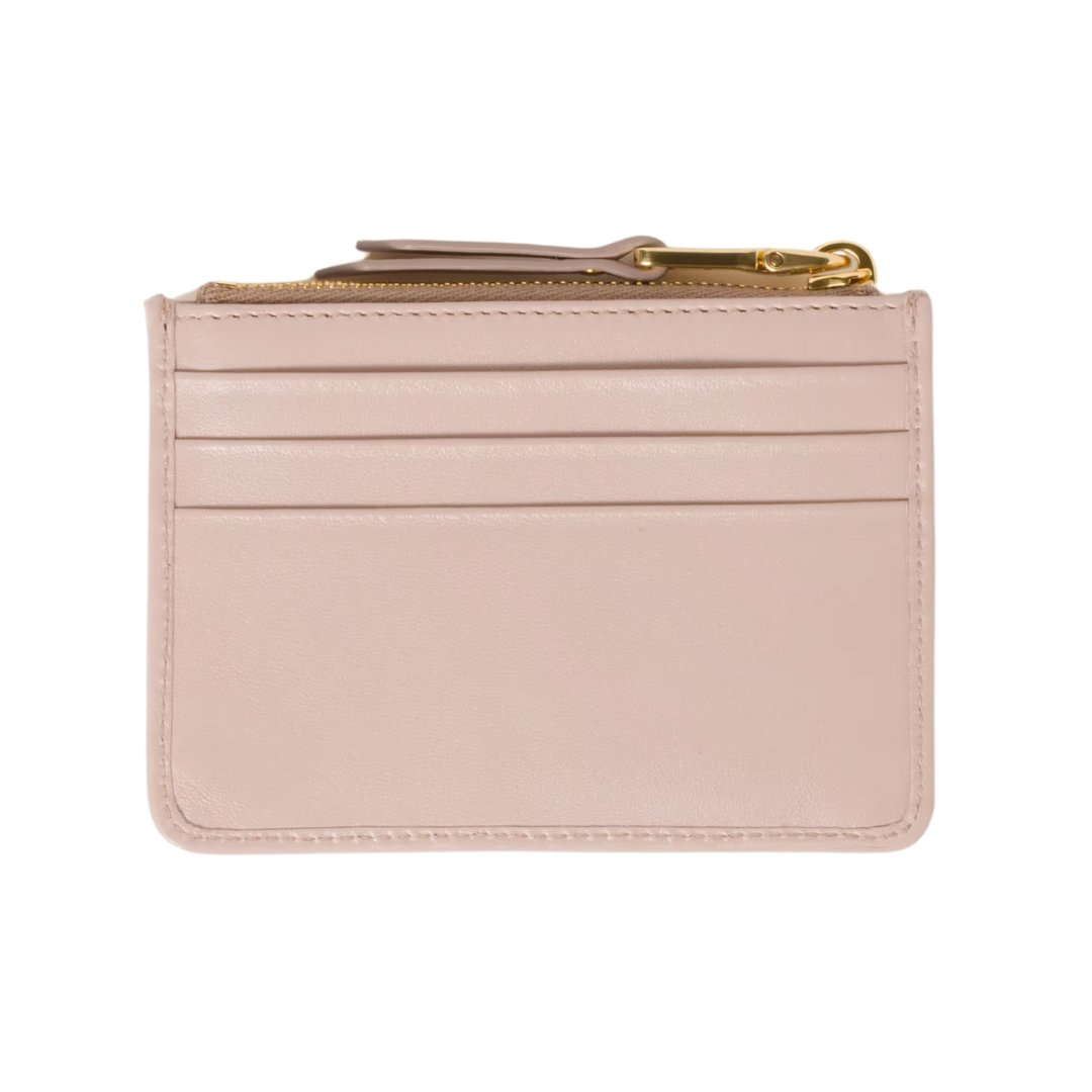 Dimensioni:● Larghezza: 8 cm● Altezza: 7 cm● Profondità: 1.5 cm Dettagli:● Materiale: Pelle Nappa● Colore: Rosa cipria● Chiusura: Zip superiore●