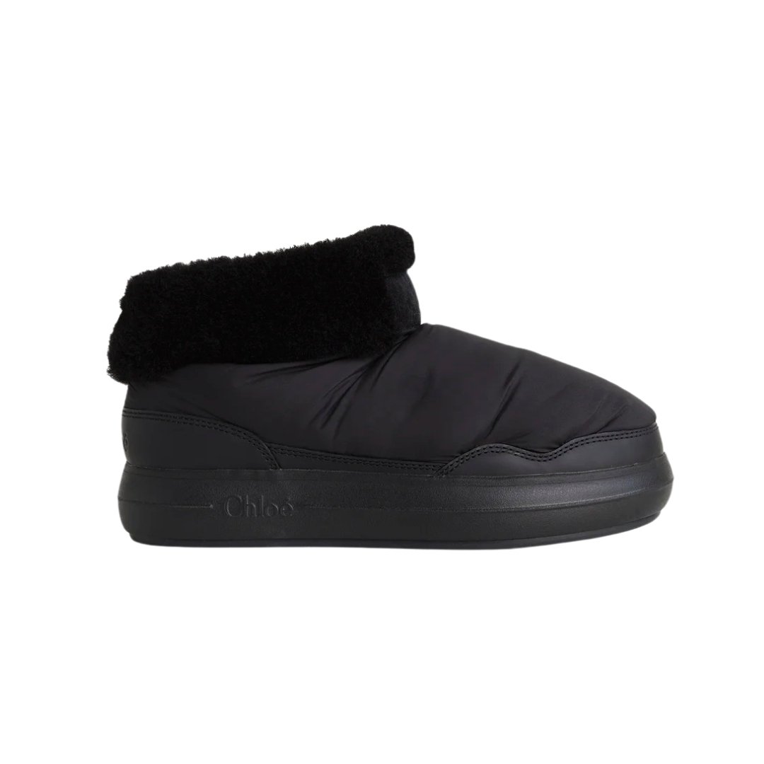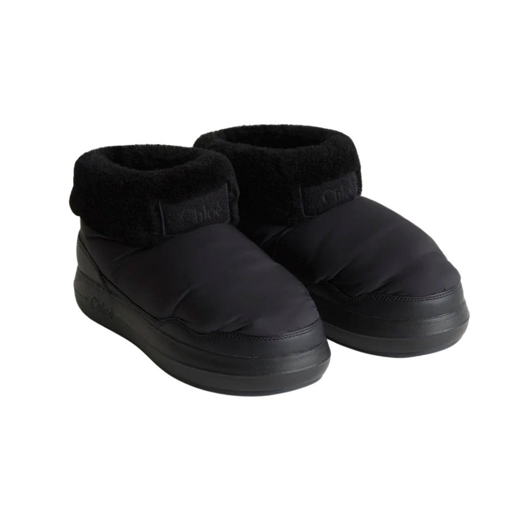Dettagli:● Materiale: Nylon trapuntato e suede● Colore: Nero● Chiusura: Slip-on elasticizzato● Logo: “Chloé” inciso sulla suola● Suola: Gomma piatta● Interno: