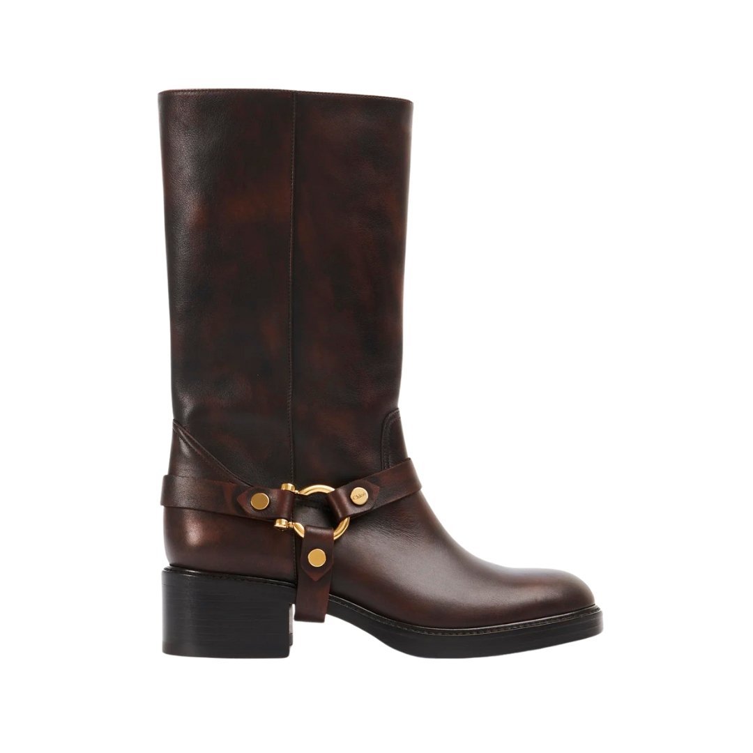Dettagli:● Materiale: Pelle di vitello● Colore: Marrone quercia● Chiusura: Senza chiusura, modello pull-on● Logo: Inciso internamente● Suola: Cuoio con tacco