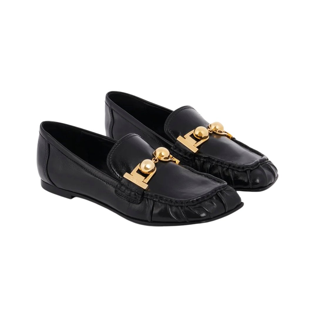 Dettagli:● Materiale: Pelle di vitello● Colore: Nero● Chiusura: Slip-on● Logo: Presente sulla fibbia● Suola: Cuoio● Interno: Pelle nera● Parti metalliche: