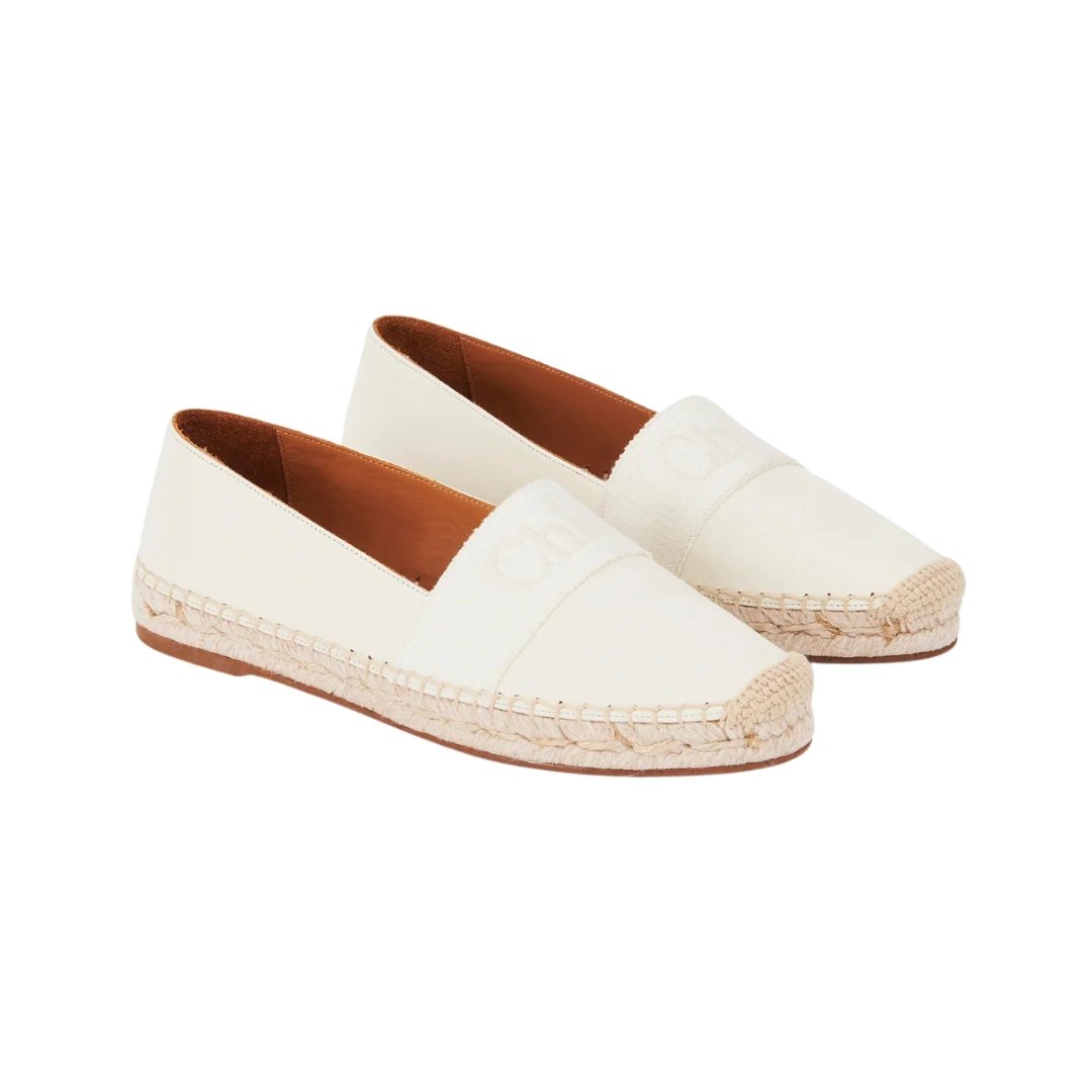 Dettagli:● Materiale: Tela e cuoio● Colore: Beige chiaro● Chiusura: Slip-on● Logo: Stampa “Chloé” in nero● Suola: Cuoio con tacco basso●
