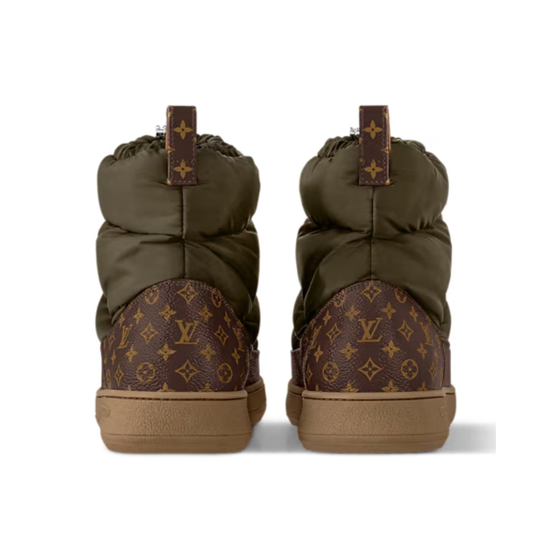 Dettagli:● Materiale: Nylon e tela Monogram● Colore: Marrone oliva● Chiusura: Elastico sul collo del piede● Logo: Monogram sulla parte bassa●
