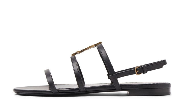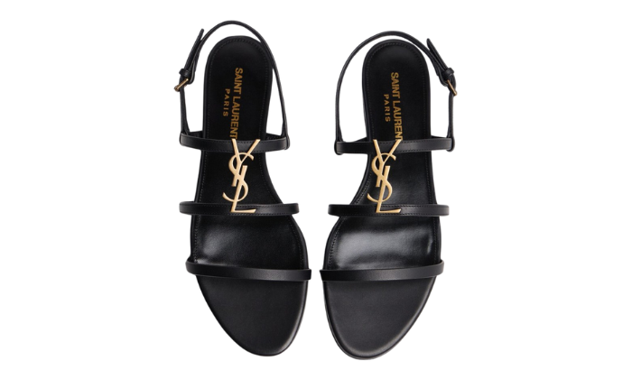 Sandali Saint Laurent Cassandra in pelle nera con monogramma YSL