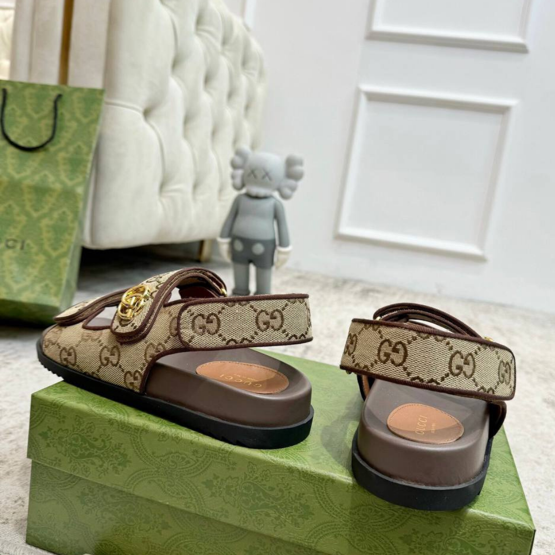 Sandali Gucci in tela GG denim e suola in gomma nera
