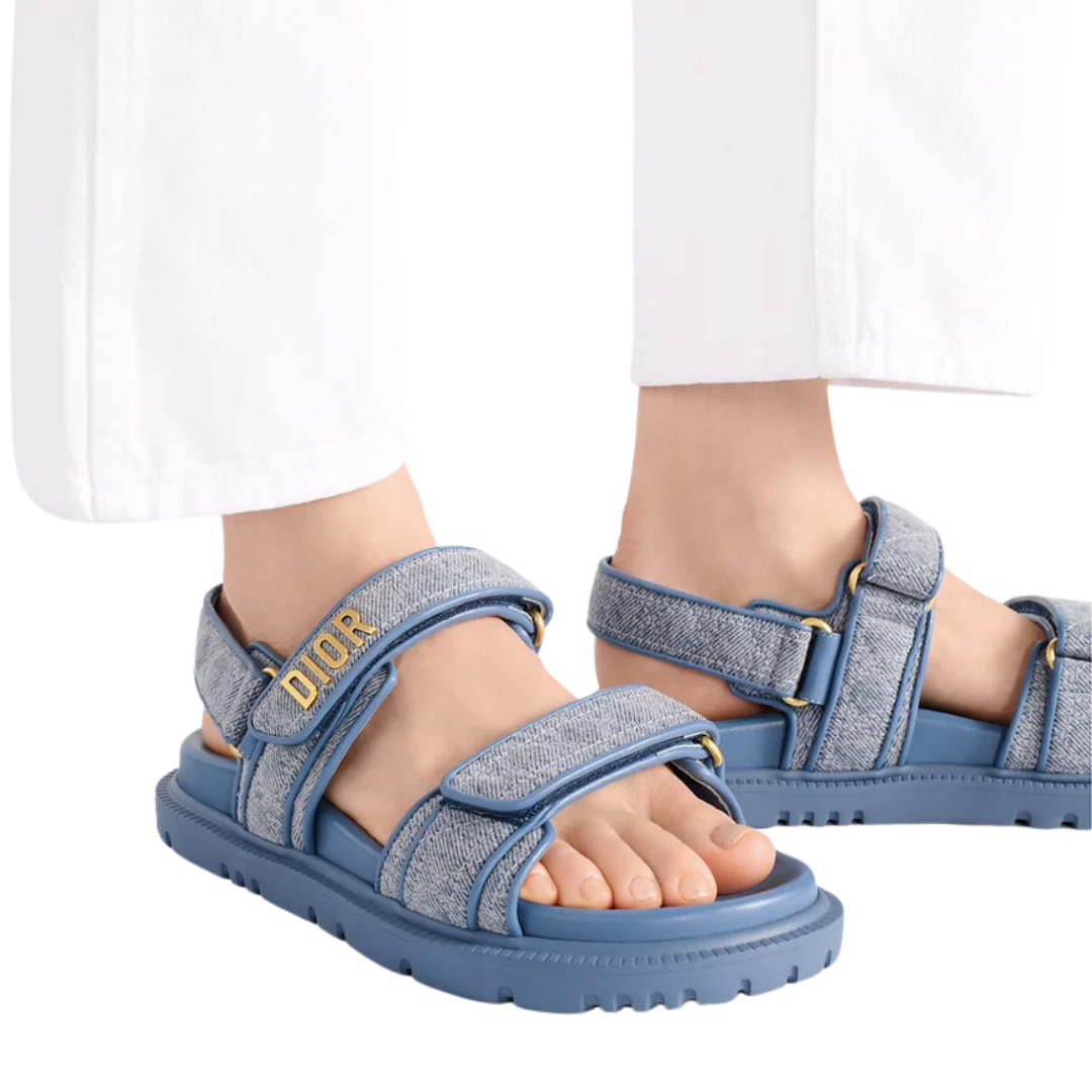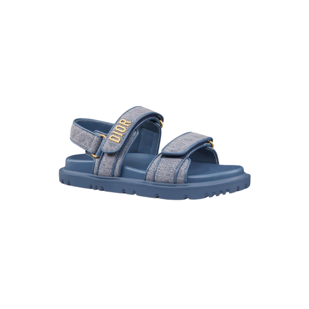 Sandalo Dior Dway Slide in denim blu con motivo Cannage