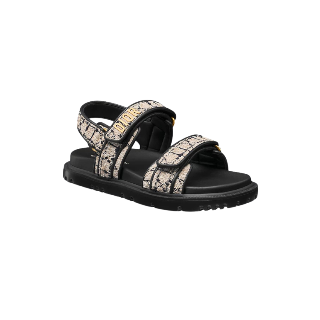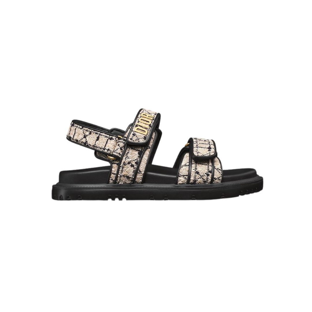 Sandalo Dior Dway Slide in tweed beige e nero con motivo Cannage