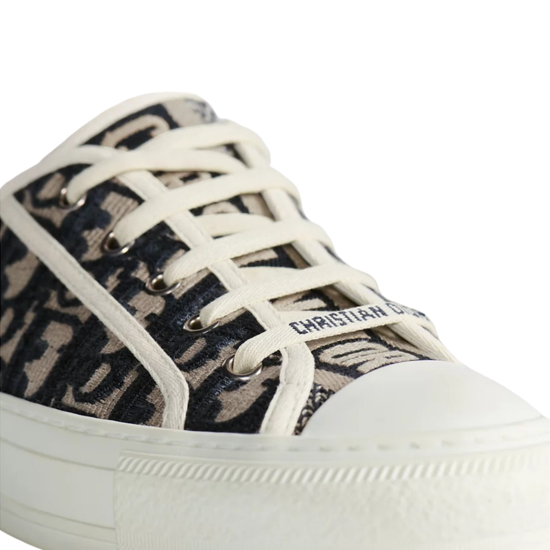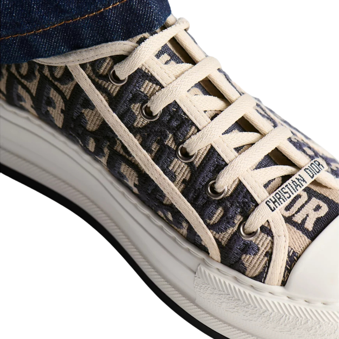 Dettagli:● Materiale: Cotone ricamato● Colore: Blu navy con motivo Oblique● Chiusura: Lacci● Logo: Motivo Oblique Dior● Suola: Gomma bianca● Interno: