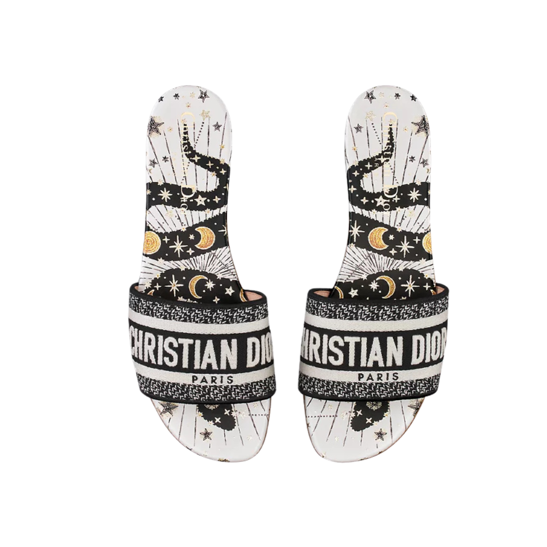 Sandali Dior Dway mule in tessuto ricamato multicolore