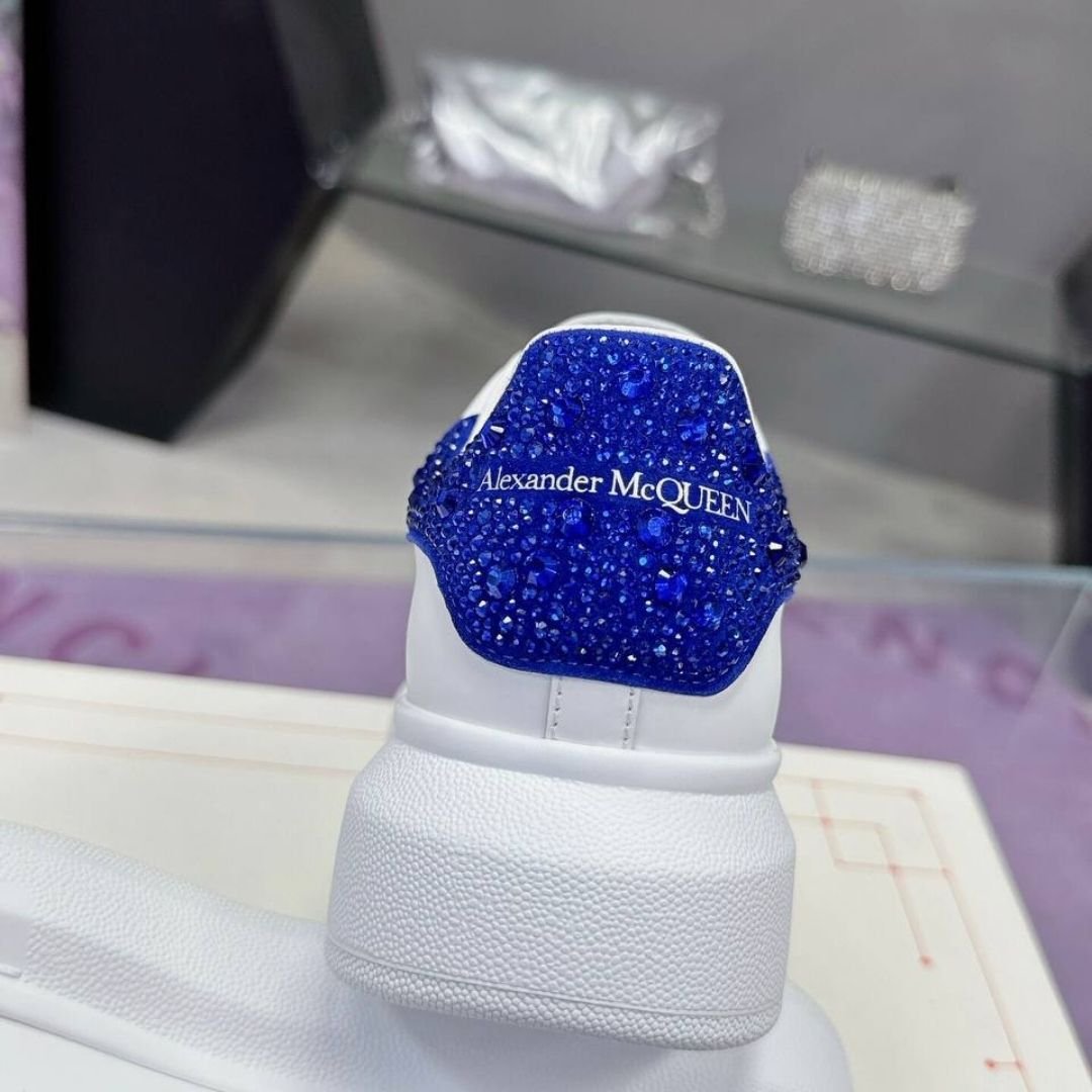 Scarpe Alexander McQueen Oversize in pelle bianca con cristalli blu