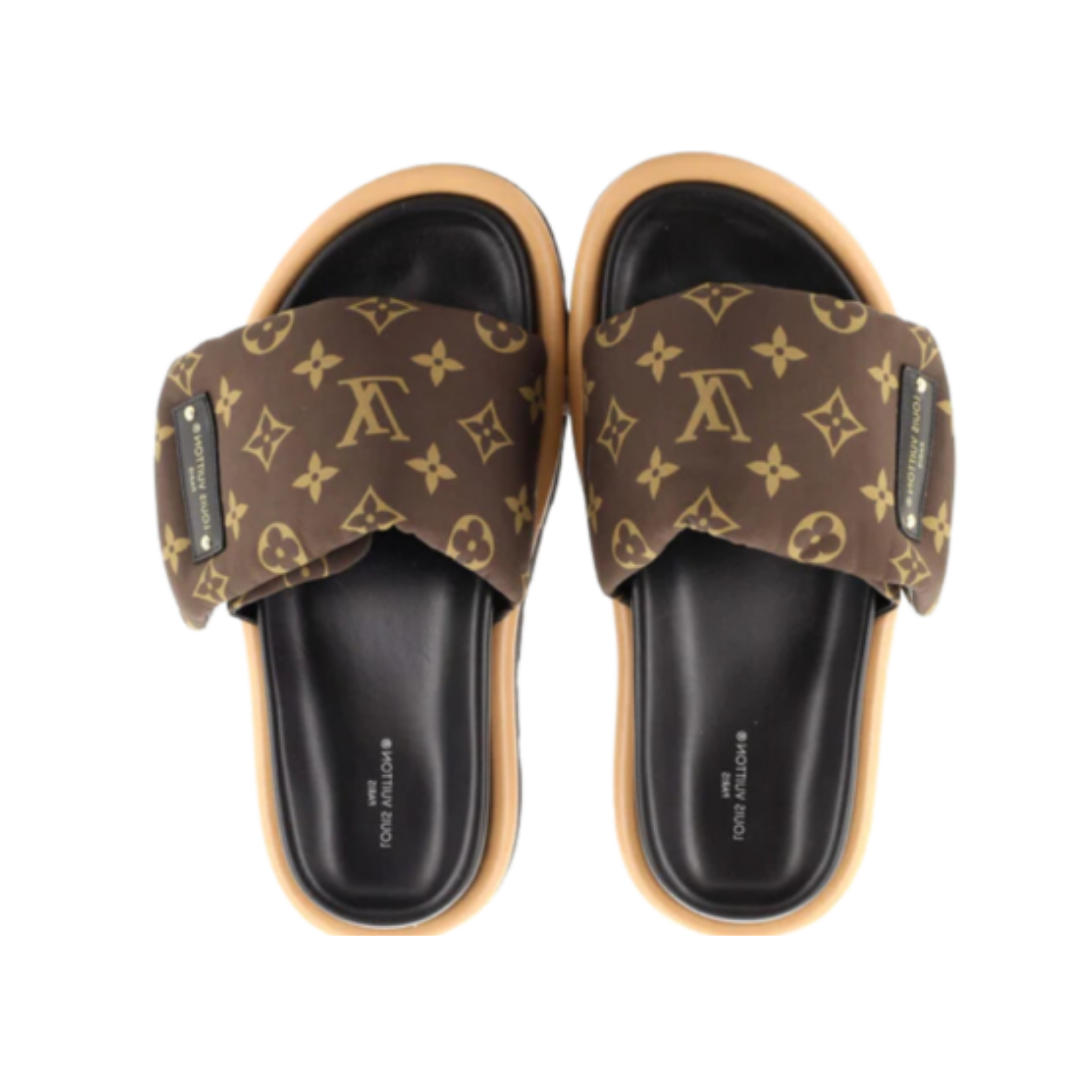 Dettagli:● Materiale: Tela Monogram imbottita● Colore: Beige● Chiusura: Slip-on● Logo: Monogram su fascia● Suola: In gomma ultra leggera● Interno: Plantare