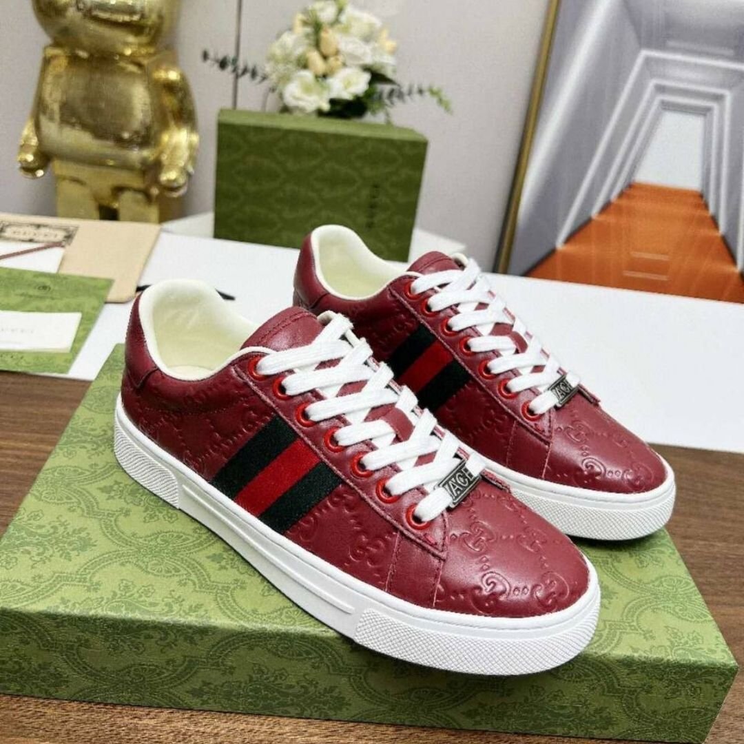 Dettagli:● Materiale: Pelle di vitello● Colore: Bianco con strisce rosso/verde● Chiusura: Lacci in cotone● Logo: Web Gucci laterale e scritta