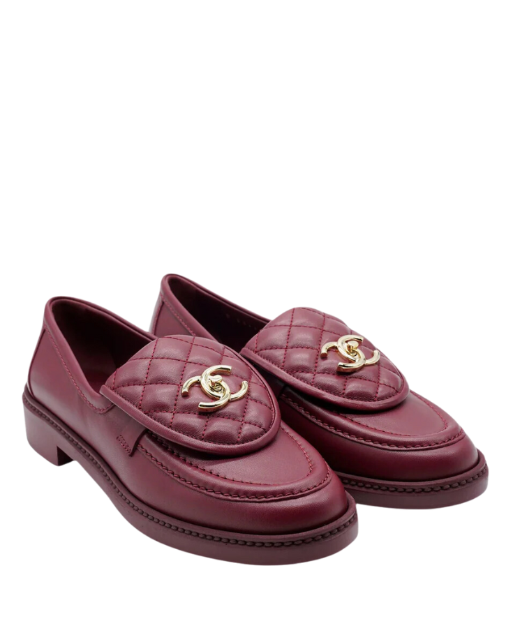 Dettagli:● Materiale: Pelle matelassé● Colore: Bordeaux● Chiusura: Slip-on● Logo: Logo CC dorato applicato● Suola: In cuoio● Interno: Fodera in pelle●