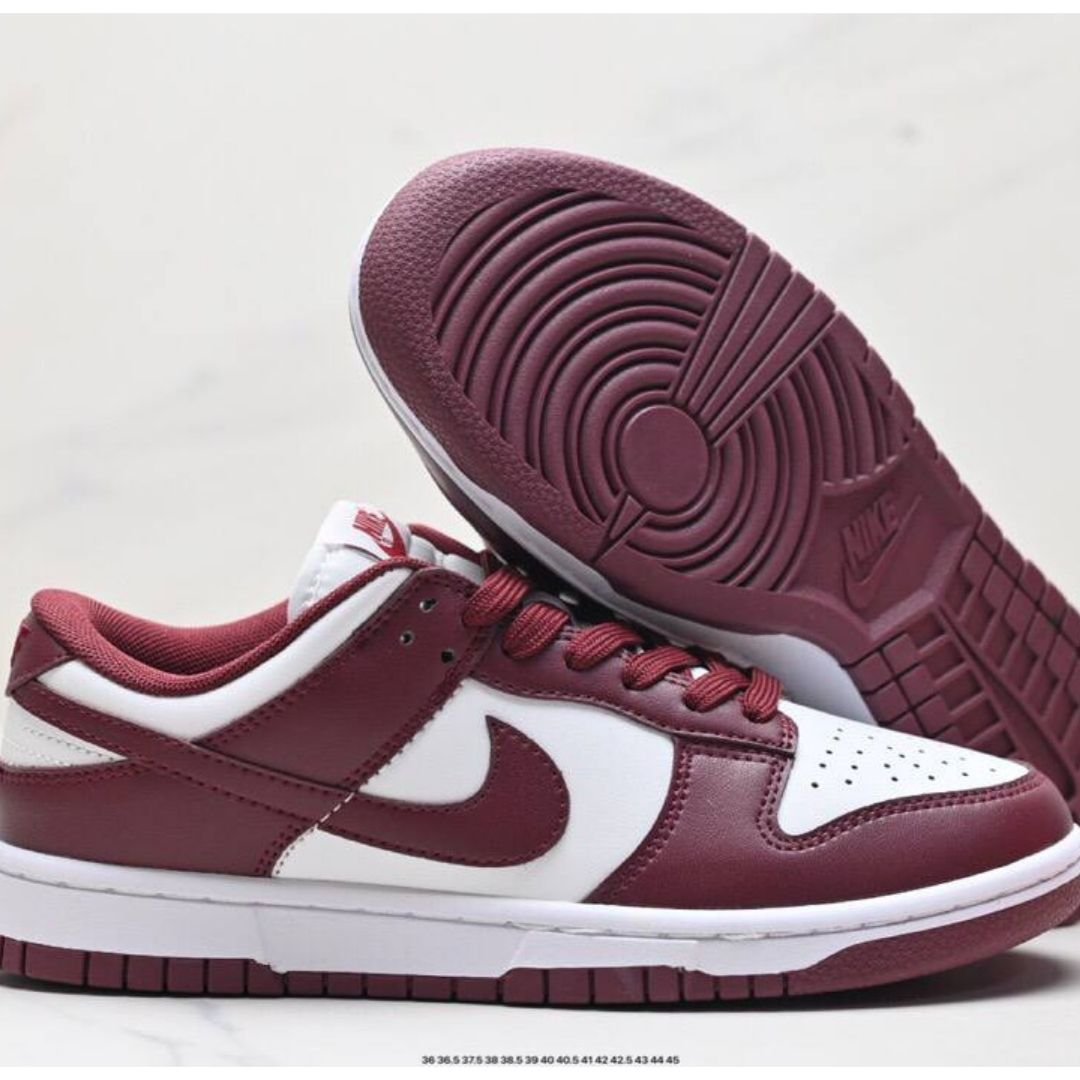 Dettagli:● Materiale: Pelle premium● Colore: Rosso bordeaux con base bianca● Chiusura: Lacci● Logo: Swoosh bianco● Suola: Suola beige chiaro● Interno: