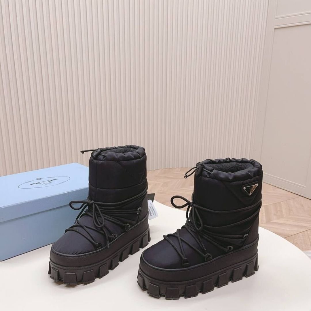 Dettagli:● Materiale: Nylon e gomma● Colore: Nero● Chiusura: Lacci frontali● Logo: Triangolo Prada sul lato● Suola: Alta in gomma scanalata●