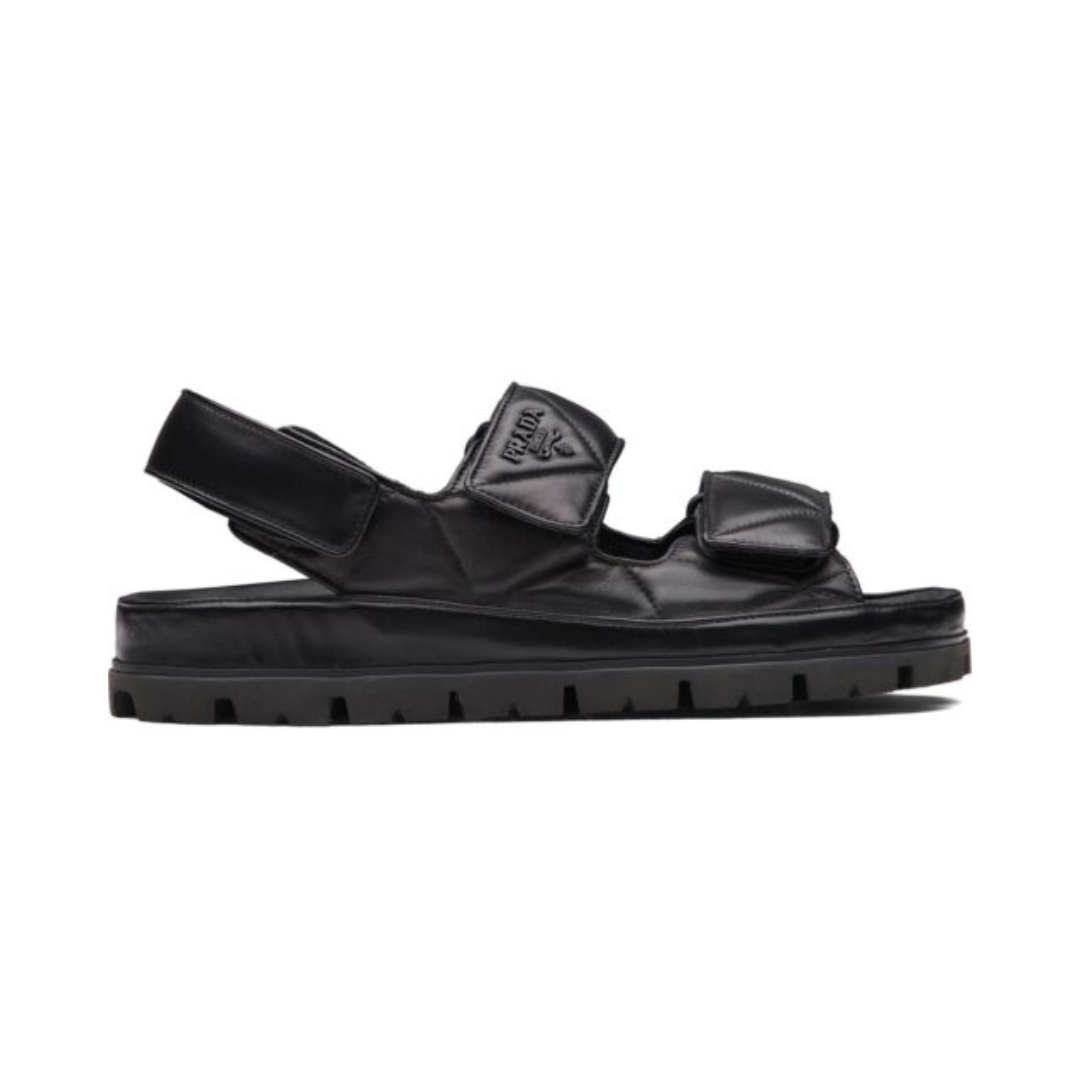 Dettagli:● Materiale: Pelle di vitello● Colore: Nero● Chiusura: Fibbia regolabile● Logo: Triangolo Prada in gomma● Suola: In gomma zigrinata● Interno: