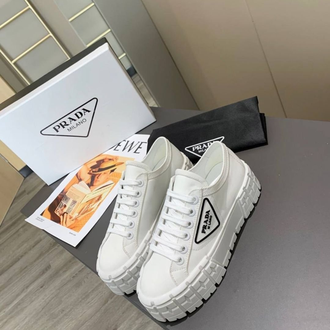 Dettagli:● Materiale: Tessuto tecnico e gomma● Colore: Bianco● Chiusura: Lacci tono su tono● Logo: Triangolo Prada laterale● Suola: Alta in